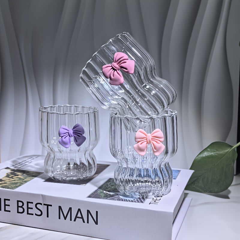 1pc Butterfly Pattern High Borosilicate Glass Coffee Cup, Heat-Resistant Vertical Ribbed Tea & Milk Mug, Durable Glass Drinkware, with No Assembly Required for Tea & Coffee