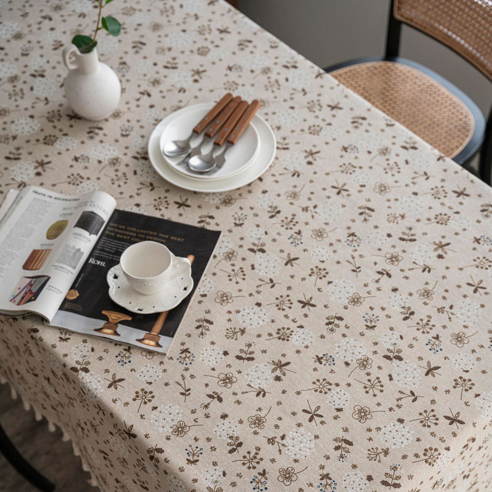 1pc Dandelion Beige Tassel Tablecloth, Bohemian Chic Farmhouse Style Retro Tablecloth, Suitable For Kitchen Dining, Buffet Table, Holiday Dinner, Party, Banquet, Restaurant, Wedding, Home Decor