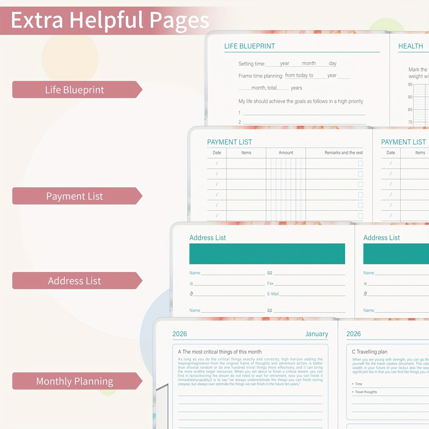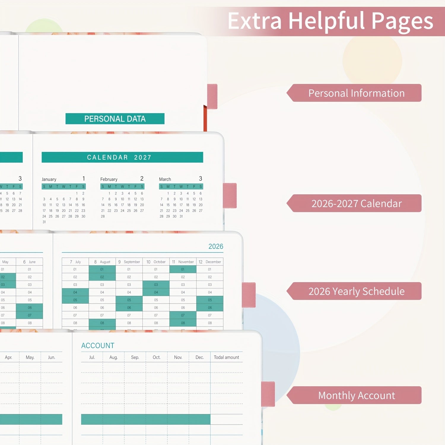 1pc Dzhzal Elegant Floral - Planner with Monthly View, Daily Organizer, Banded Elastic Closure, Pen Loop, Inner Pocket - Compact A5 Notebook (14.48x21.08cm) for Professionals, Students, Personal & Office Use - Perfect Gift Id