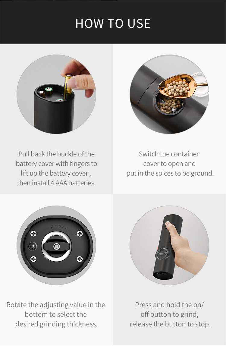 1pc Electric Salt And Pepper Grinder With Adjustable Coarseness Refillable, Pepper Mill, Battery Powered, Kitchen Automatic Grinder, Kitchen Gadgets