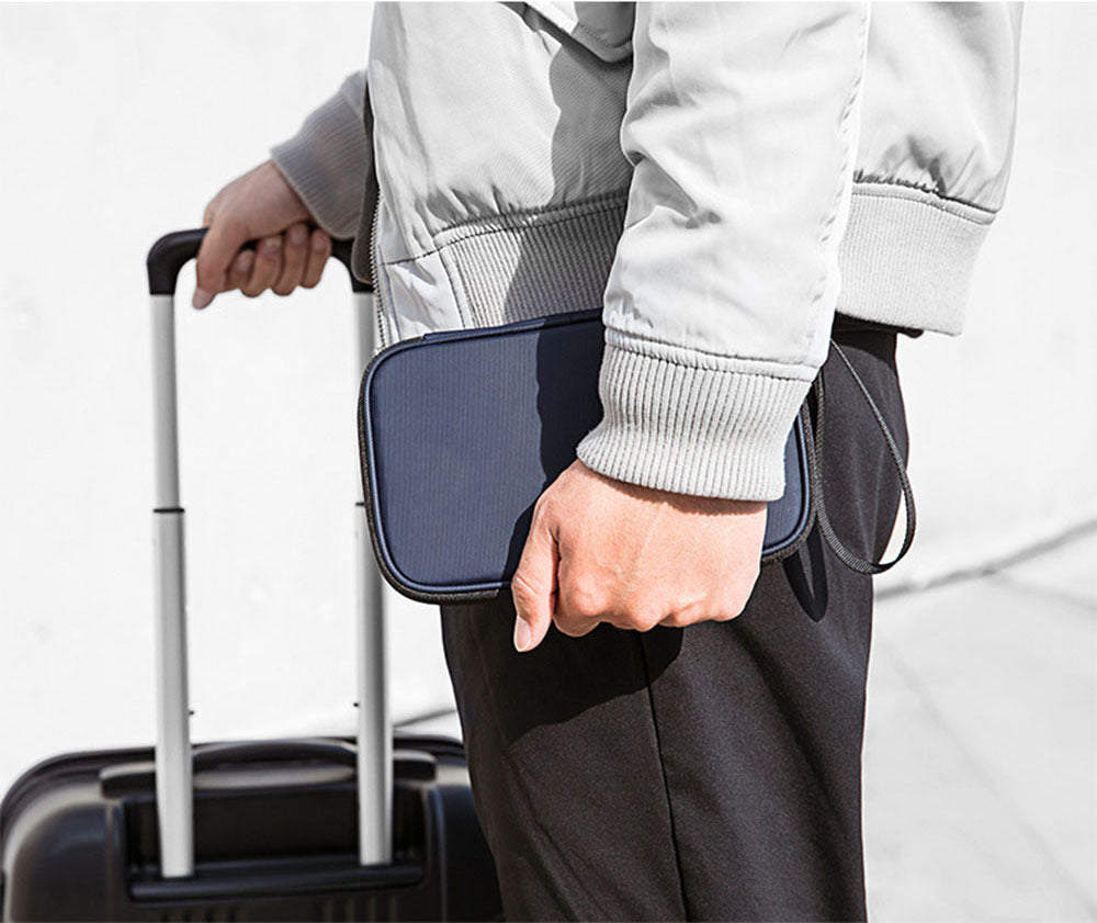 1pc Family Passport Holder With A Sim Card Slot And Eject Pin, RFID Blocking Passport Wallet, Waterproof Ticket Document Organizer Bag With Chain Strap, Up To 6 Passports 9 Credit Cards