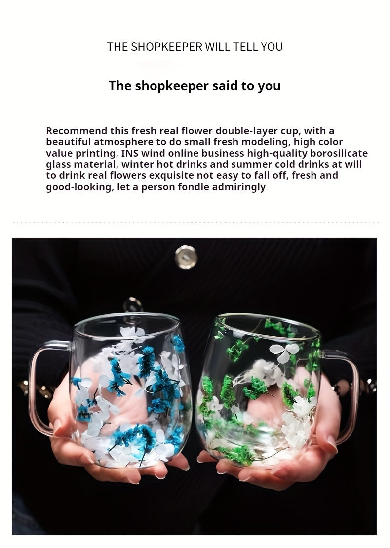 1pc, Flowers Inside Glass Coffee Mug, High Borosilicate Glass Double-Walled Espresso Coffee Cups, Heat Insulated Water Cups, Summer Winter Drinkware, Birthday Gifts