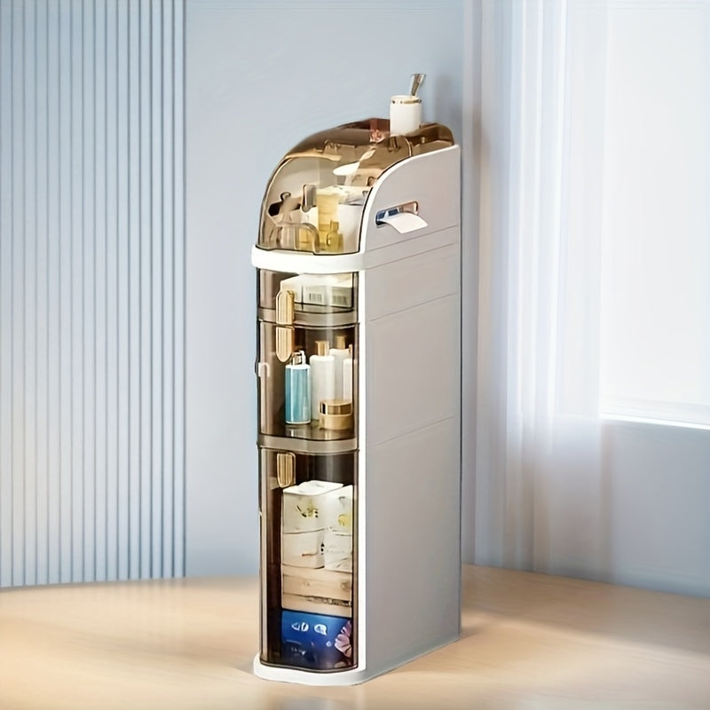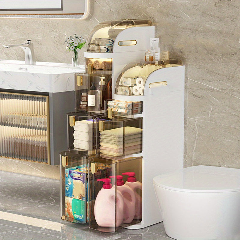 1 unidade de Armário de Canto Slim Branco e Dourado de Grande Capacidade com Gavetas e Portas Transparentes – Organizador Independente de Plástico Reforçado com Rodas, ideal para Casa de Banho, Quarto e Cozinha – Unidade de Prateleiras Moderna e Compacta que Poupa Espaço. A venda na Bmaxstore online.