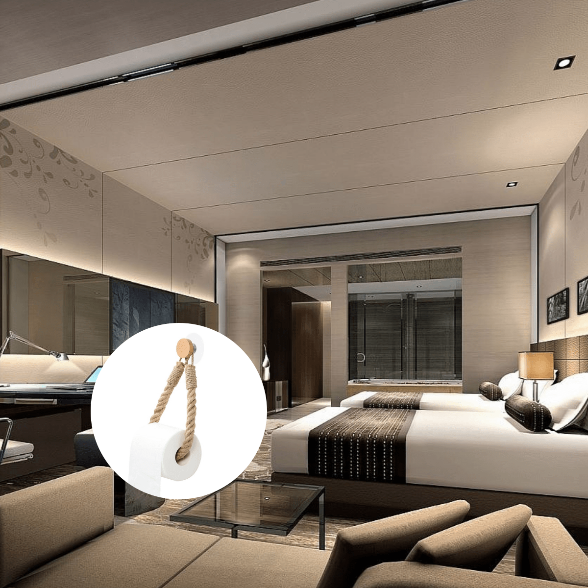1pc LDQ Hemp Rope Paper Towel Holder, Solid Wood Rope Weaving, Fragrance-Free Fabric Towel Storage Rack, Creative No-Punch Wall-Mounted Roll Paper Holder