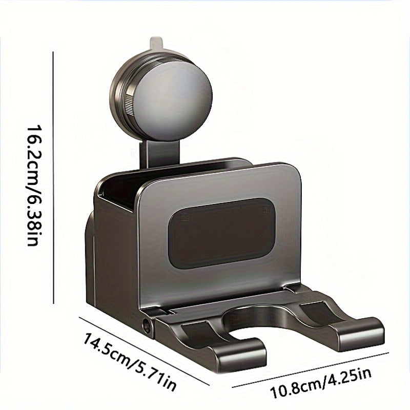 1pc Multifunctional Suction Cup Hair Dryer Holder, No-Drill Bathroom Wall-Mounted Storage Rack, Hanging Organizer for Hair Dryer, Toothbrush, Comb, Suitable for Bathroom, Kitchen, Outdoor Storage
