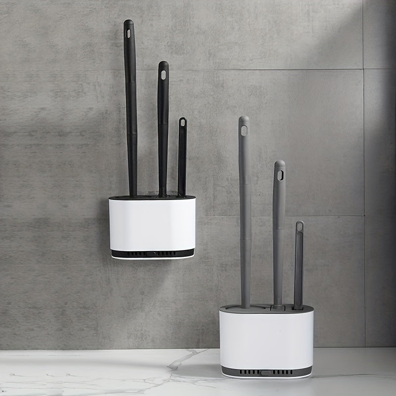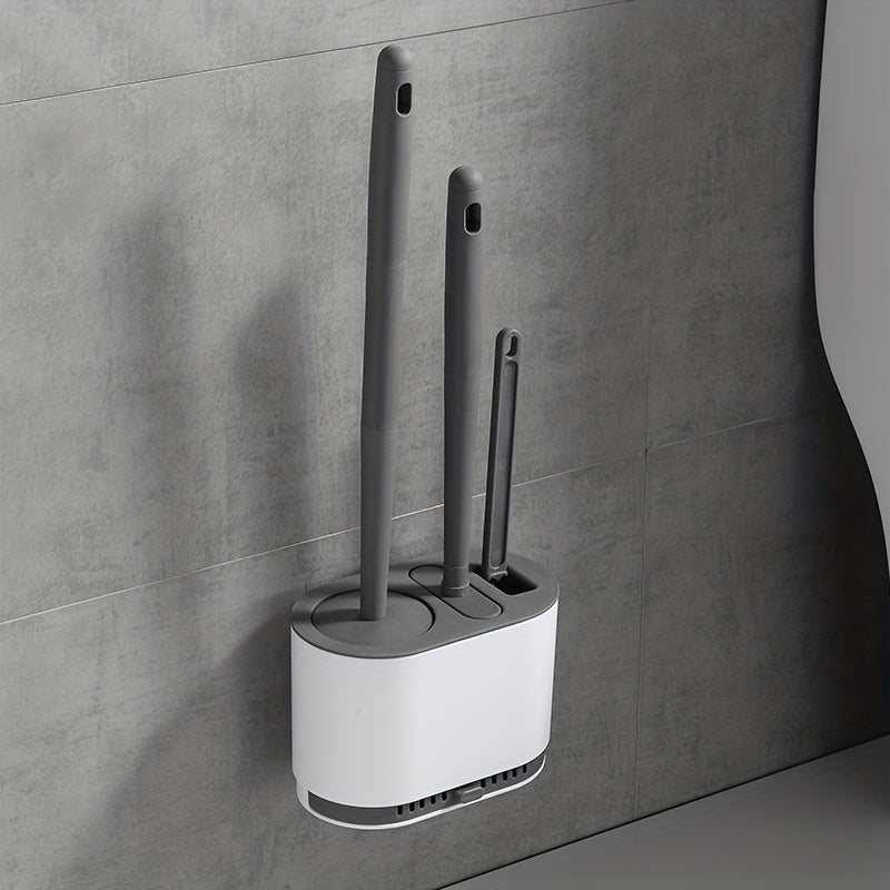 1pc No-Slip Silicone Toilet Brush Set with Long Handle and Soft Bristles for Easy and Quick Cleaning