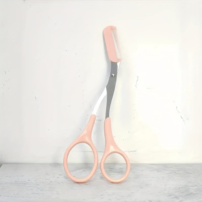 1pc Pink Eyebrow Trimmer with Built-in Comb, Stainless Steel Precision Grooming Tool, Perfect for Beginners, Plastic & Metal, Ergonomic Handle, Fragrance-Free