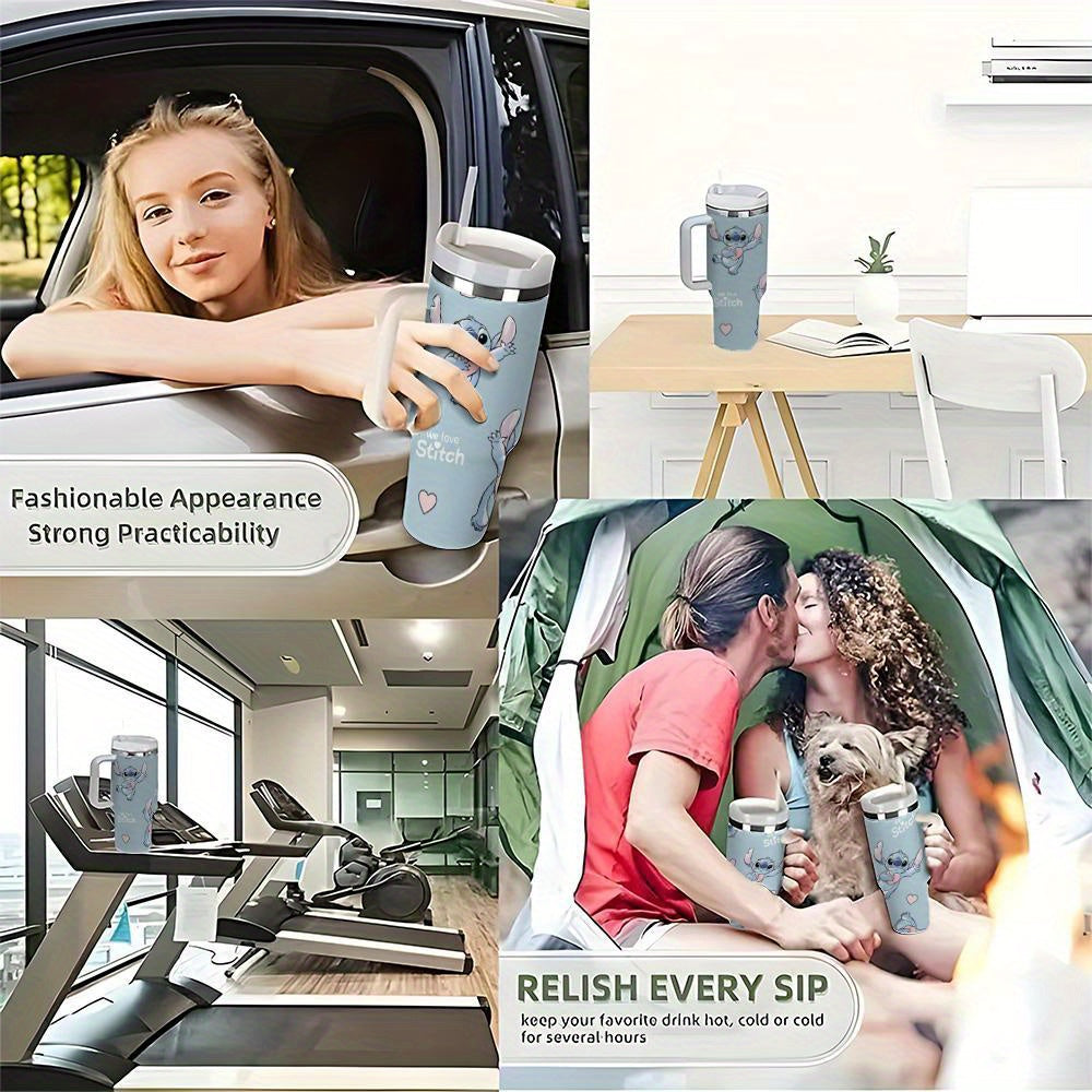 1pc Stitch 40oz Stainless Steel Tumbler with Lid and Straw, Leak Proof Vacuum Insulated Travel Mug, BPA Free, Hand Wash Only, Round Shape, Ideal for Valentine's Day, Easter, Mother's & Father's Day Gifts