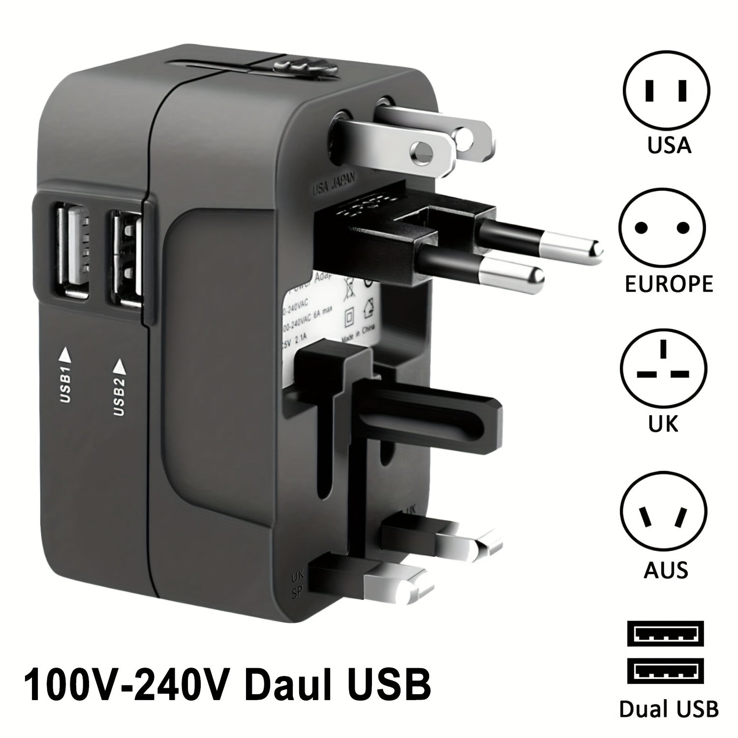 1pc Universal Travel Socket, Dual USB Ports, 110V-240V Input, EU/US/AU Plug, Surge Protection, All-in-One Wall Charger for Over 150 Countries, Essential for Business Trips and Travel