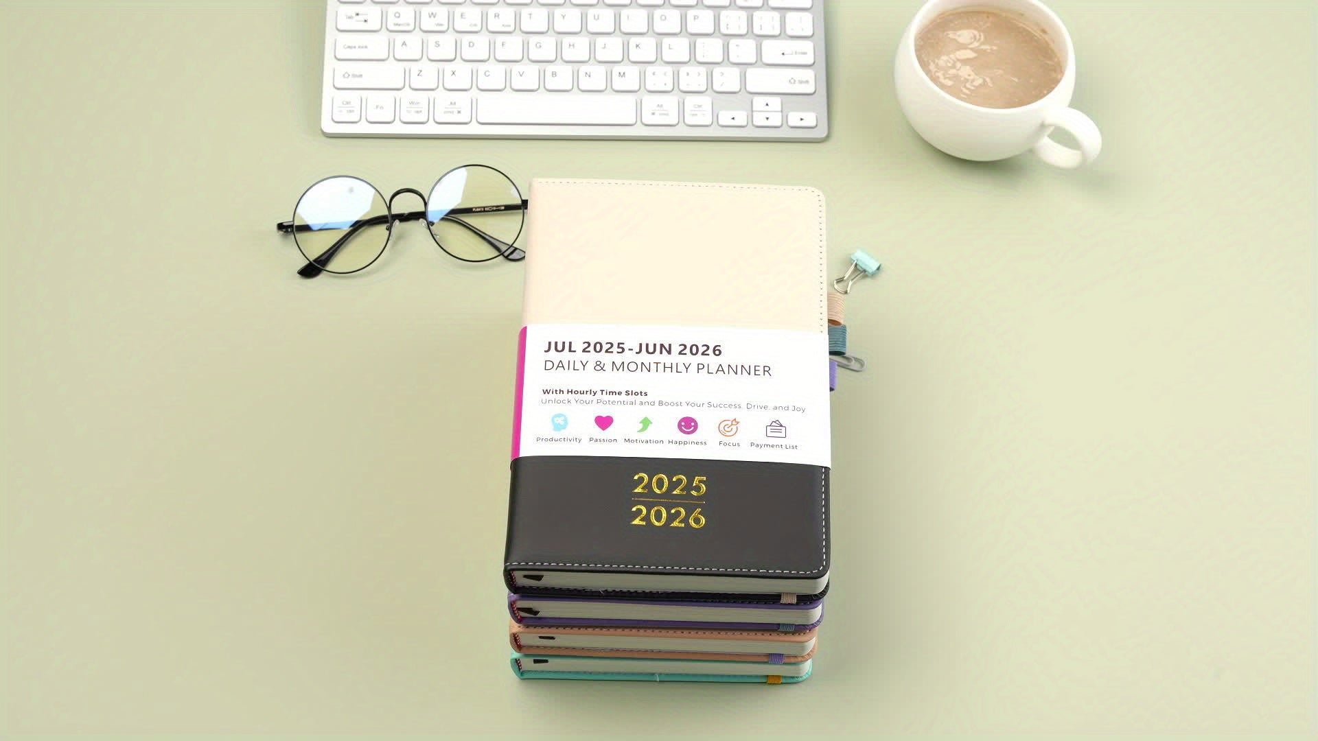 2025-2026 Academic Planner with 12-Month Labels - Daily and Monthly Management Organizer, Marker Section, Faux Leather Cover, 21.34cm x 14.48cm Adult Back Planner, Academic Planner Notebook, Organized Layo