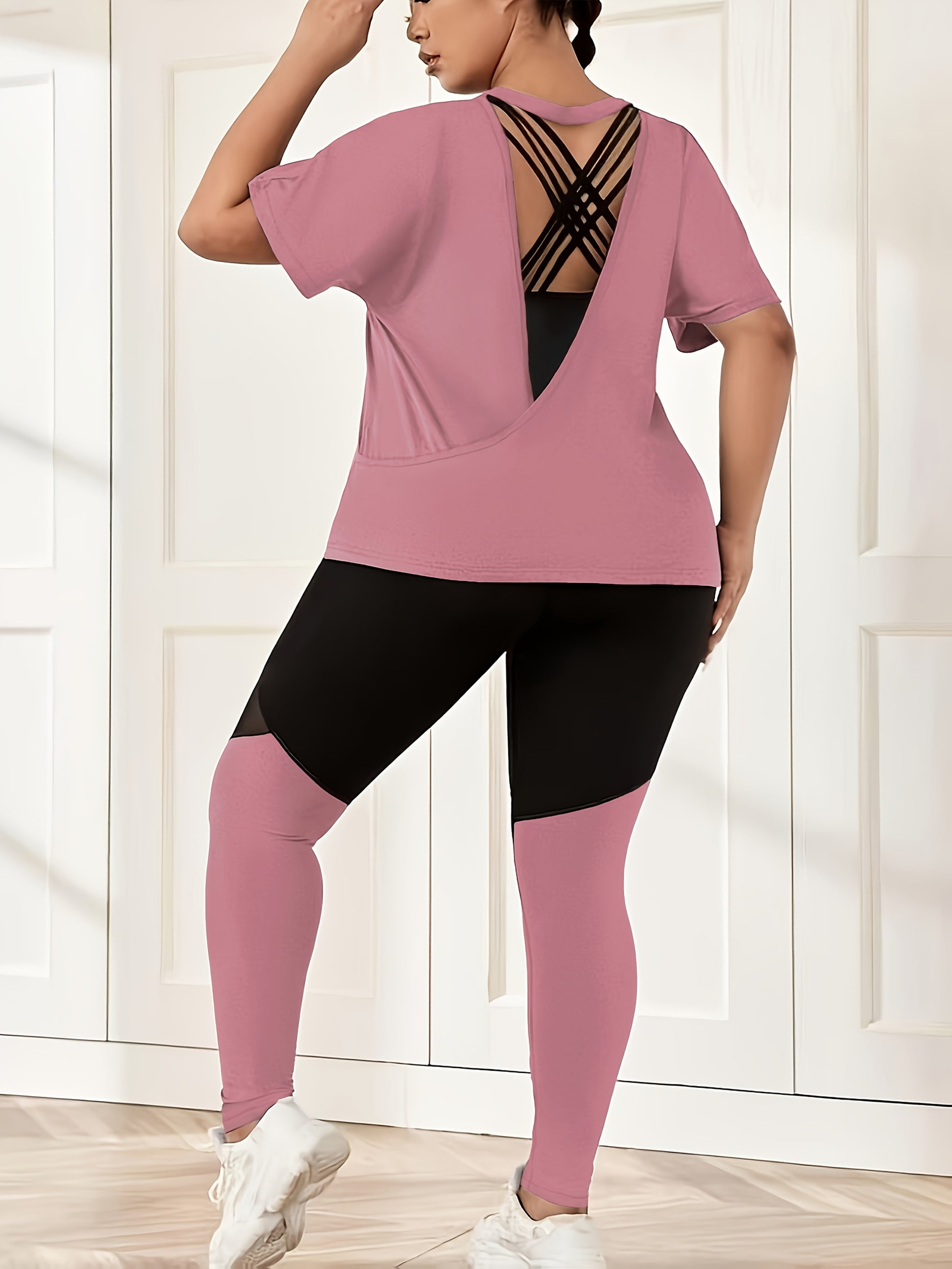 205 New Fashion Backless Quick-Dry Short Sleeve Top and Loose-Fit Sports Pants Fitness Set