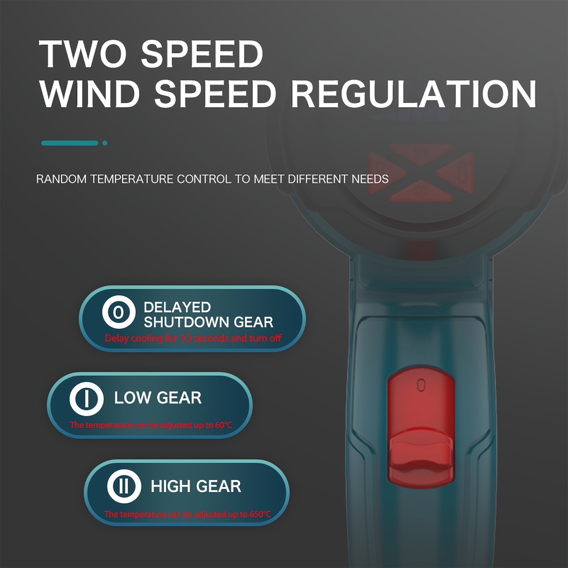 220V EU plug Newly Upgraded Heat Gun 60-650° Adjustable Blue Light LCD Display with 4 Nozzles, Adjustable Temperature and Blowing Volume, High Power Ideal for Shrink Wrap, Soften Paint, Bend Plastic Tubes, Loose Bolts, etc
