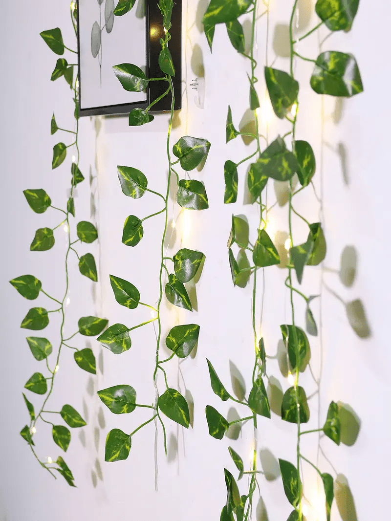 2m/6.56ft 20 LED Green Leaf String Lights Garden Lights, New Year Decorations String Lights, Wedding Thanksgiving Christmas Decoration String Lights (Batteries Not Included)