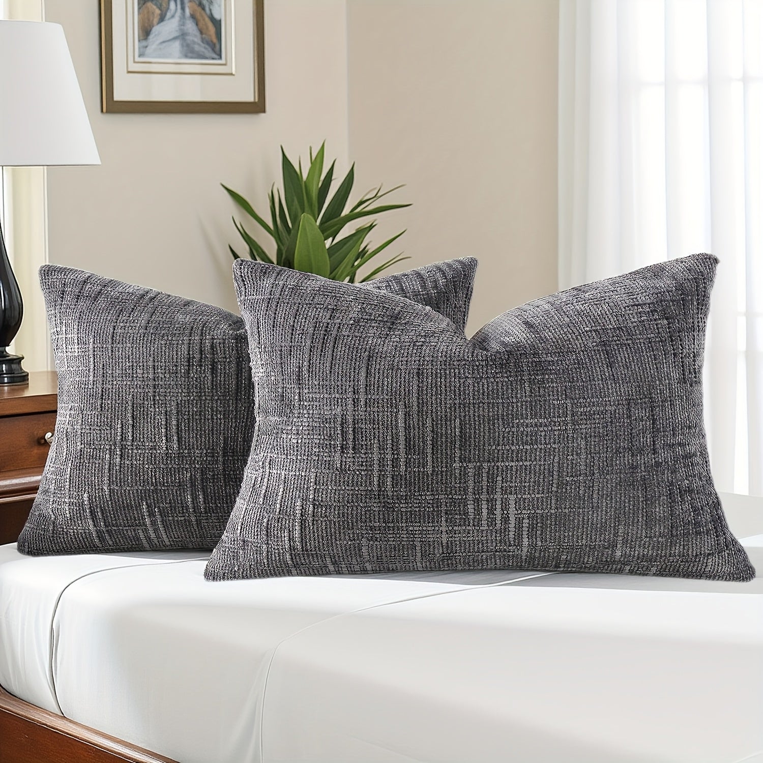 2pcs, Chenille Throw Pillow Covers Set of 2 Thick Textured Slubby Couch Pillow Covers Farmhouse Accent Modern Neutral Decorative Pillow Cases for Bed Sofa, Living Room, Machine Washable