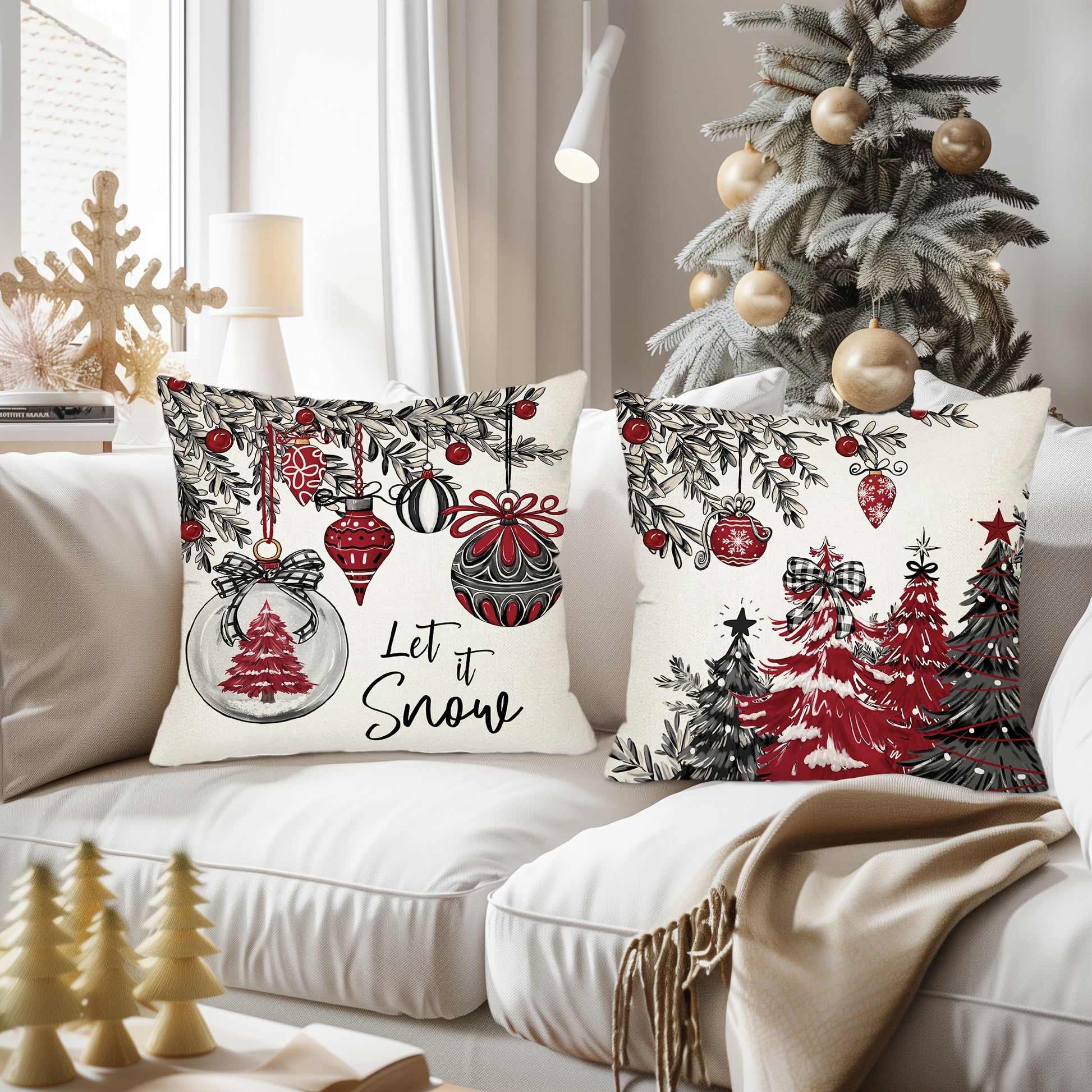 2pcs, Christmas Throw Pillow Covers, 45.72cm*45.72cm Christmas Tree Decorative Home Decor Cushion Covers, Farmhouse Winter Holiday Home Decor Pillowcases, for Porch Patio Couch Sofa Living Room Outdoor, Without Pillow Inserts