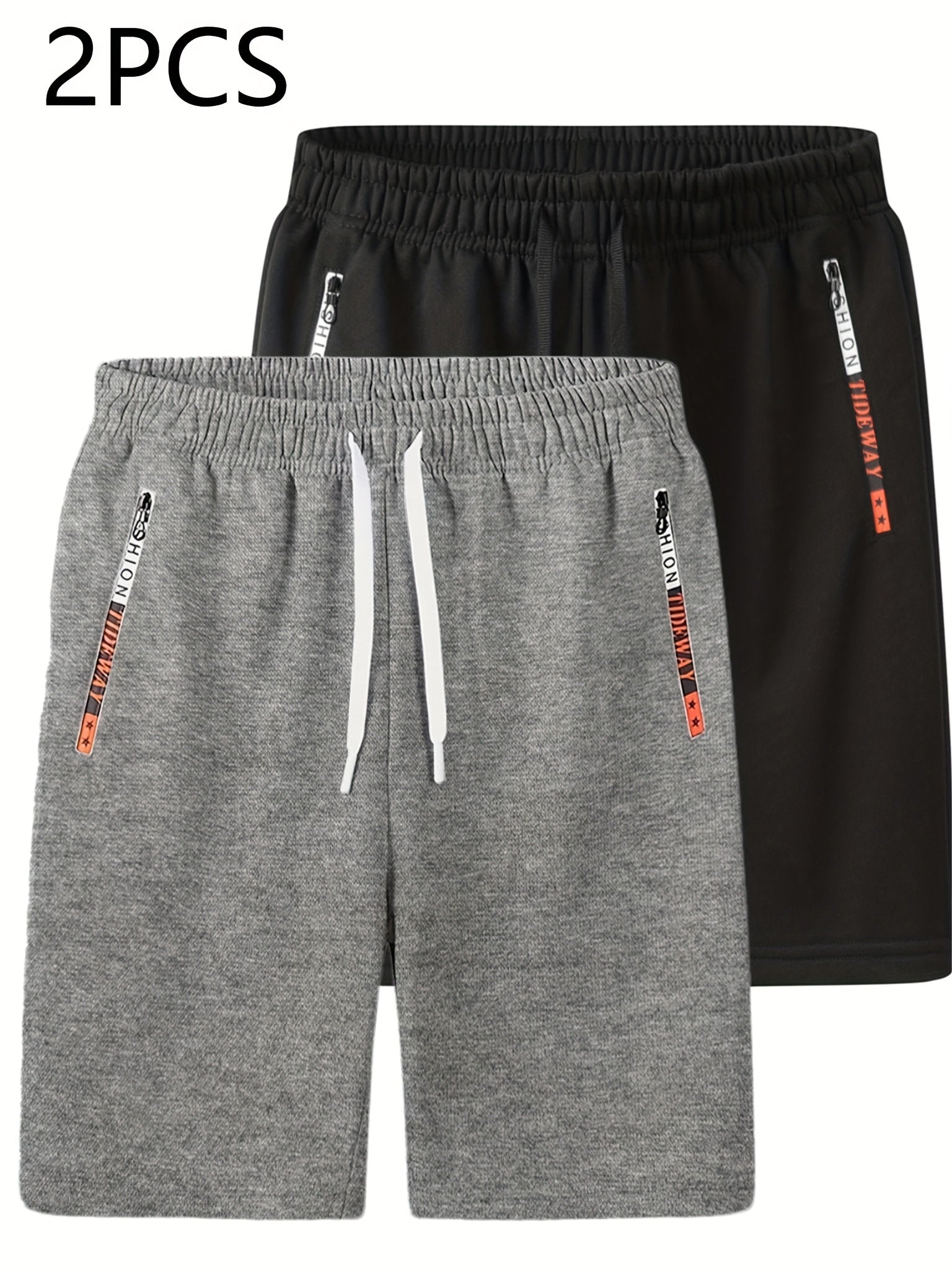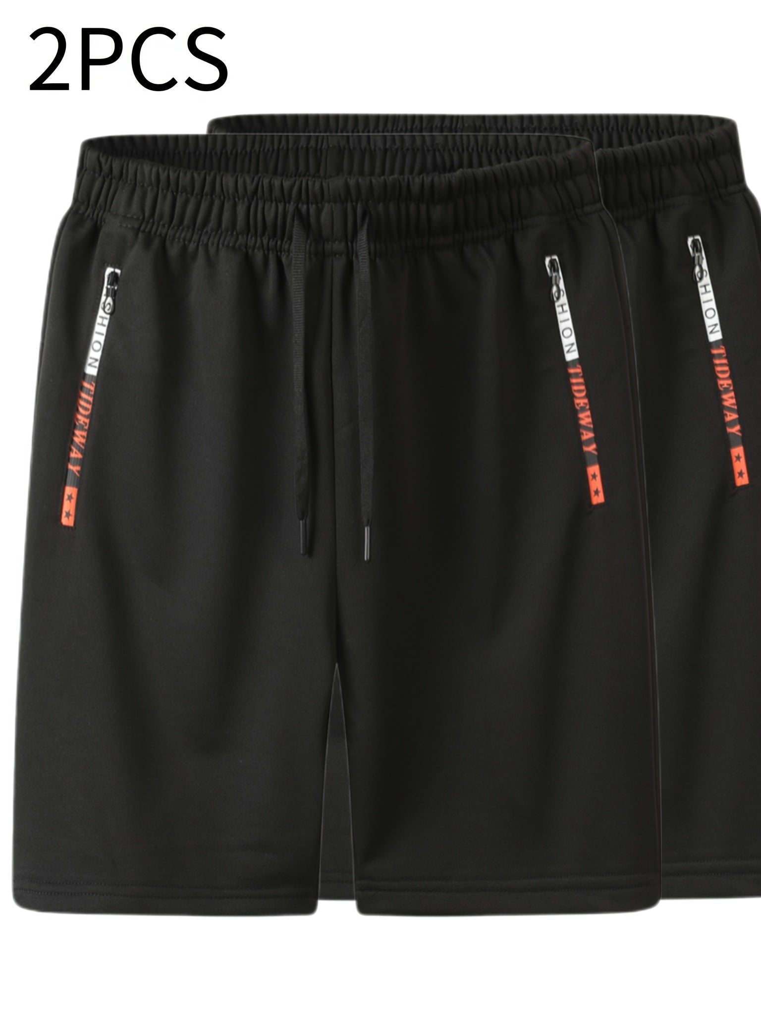 2pcs Men's Casual Outdoor Shorts - Summer Men's Casual Shorts with Zipper Pockets, Minimalist Multi-Pocket Design for Daily Wear, Running, Fitness & Travel, 100% Polyester Knit Fabric, Drawstring Waistband, Machine Washable,