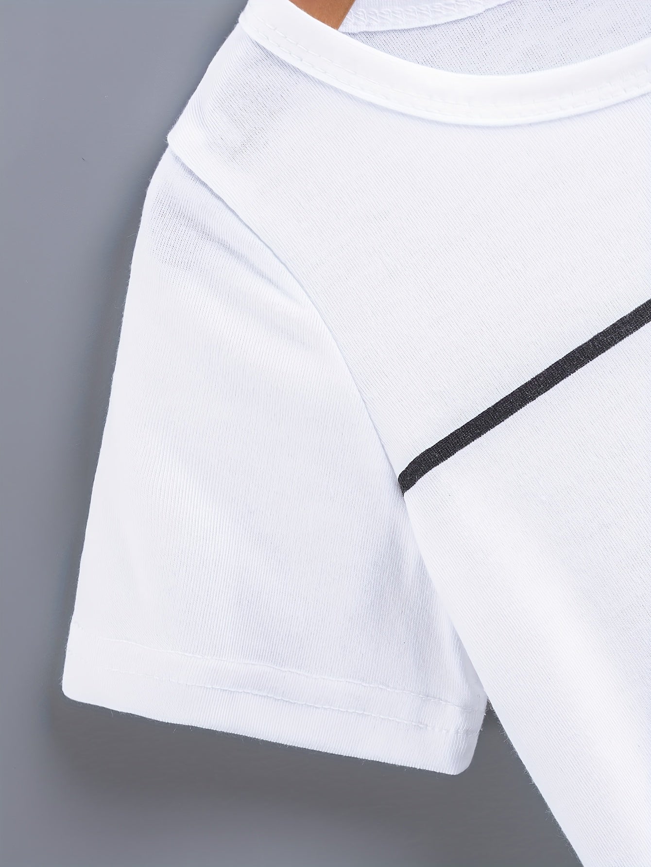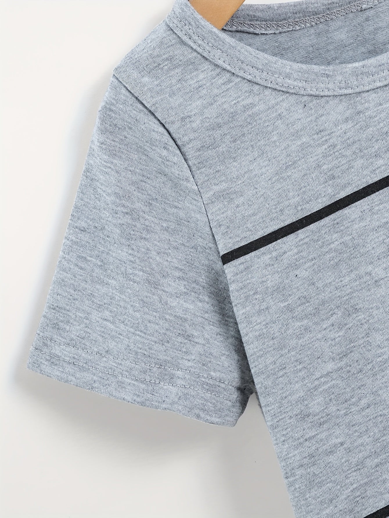 2pcs Set of Boys' Summer Striped Print Round Neck Short Sleeve T-shirt and Casual Shorts