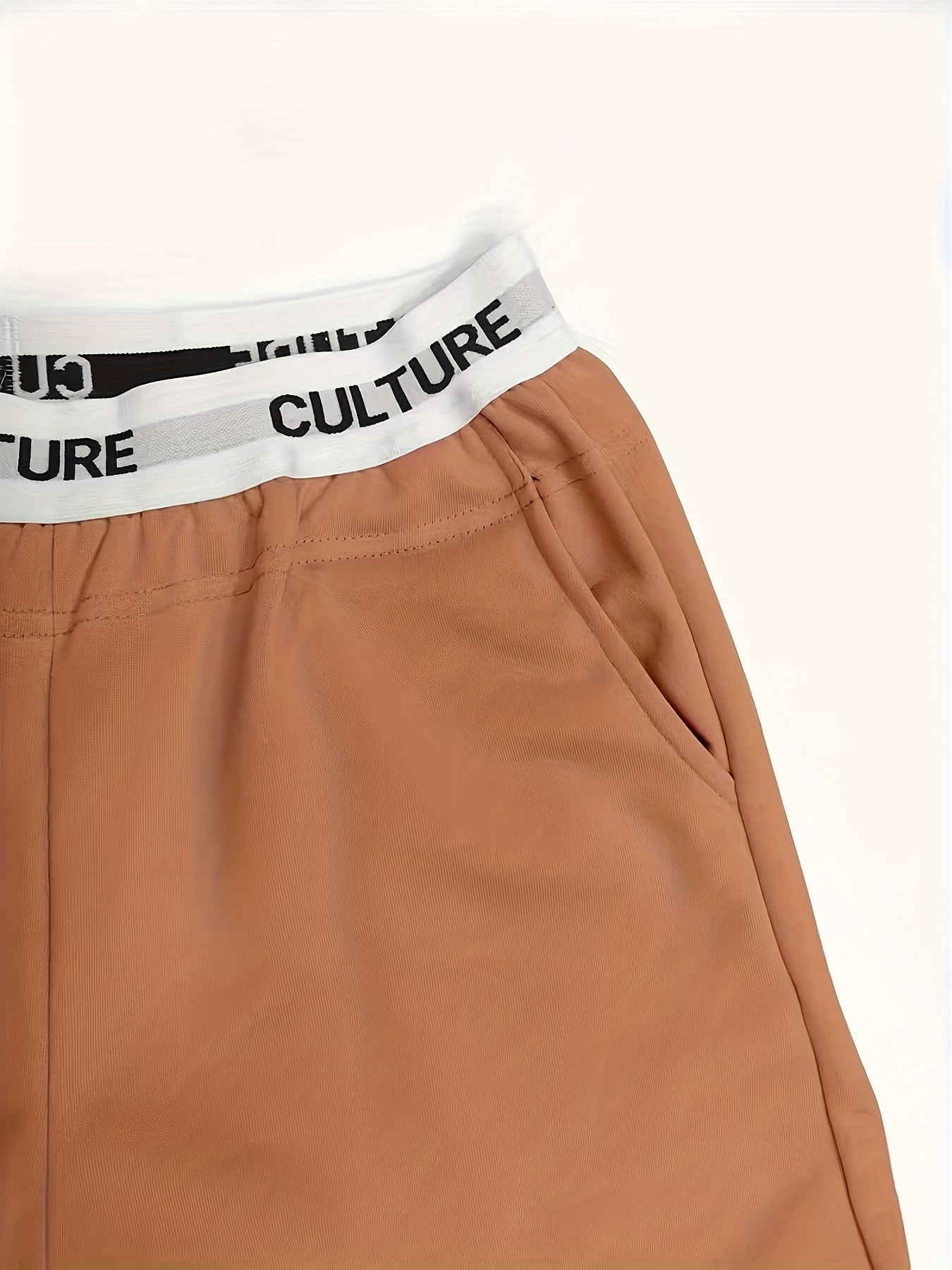 2pcs Women'S High-Waisted Wide-Leg Pants with Heart Letter Print - Casual Loose-Fit Joggers, Solid Color, All-Season Comfort, Pockets, Versatile for Casual Attire