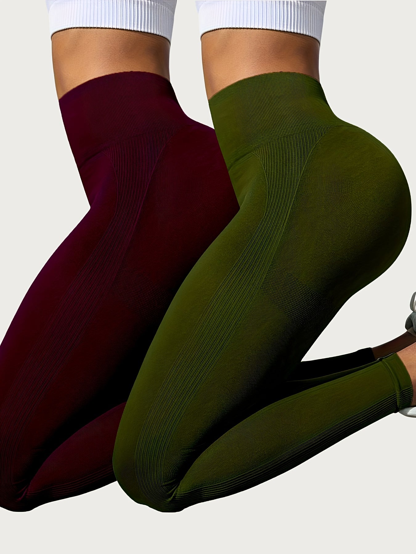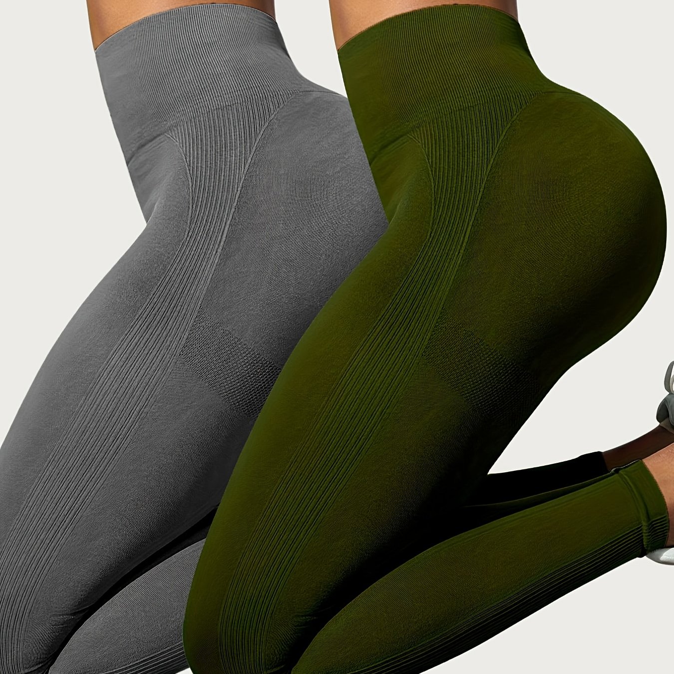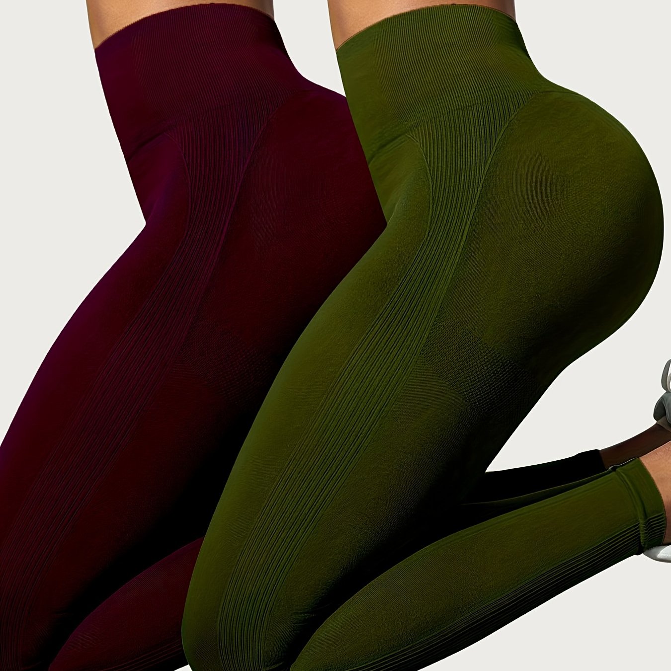 2pcs Solid Color Fitness Yoga Sports Leggings, High Stretch Tummy Control Yoga Leggings, Women's Activewear