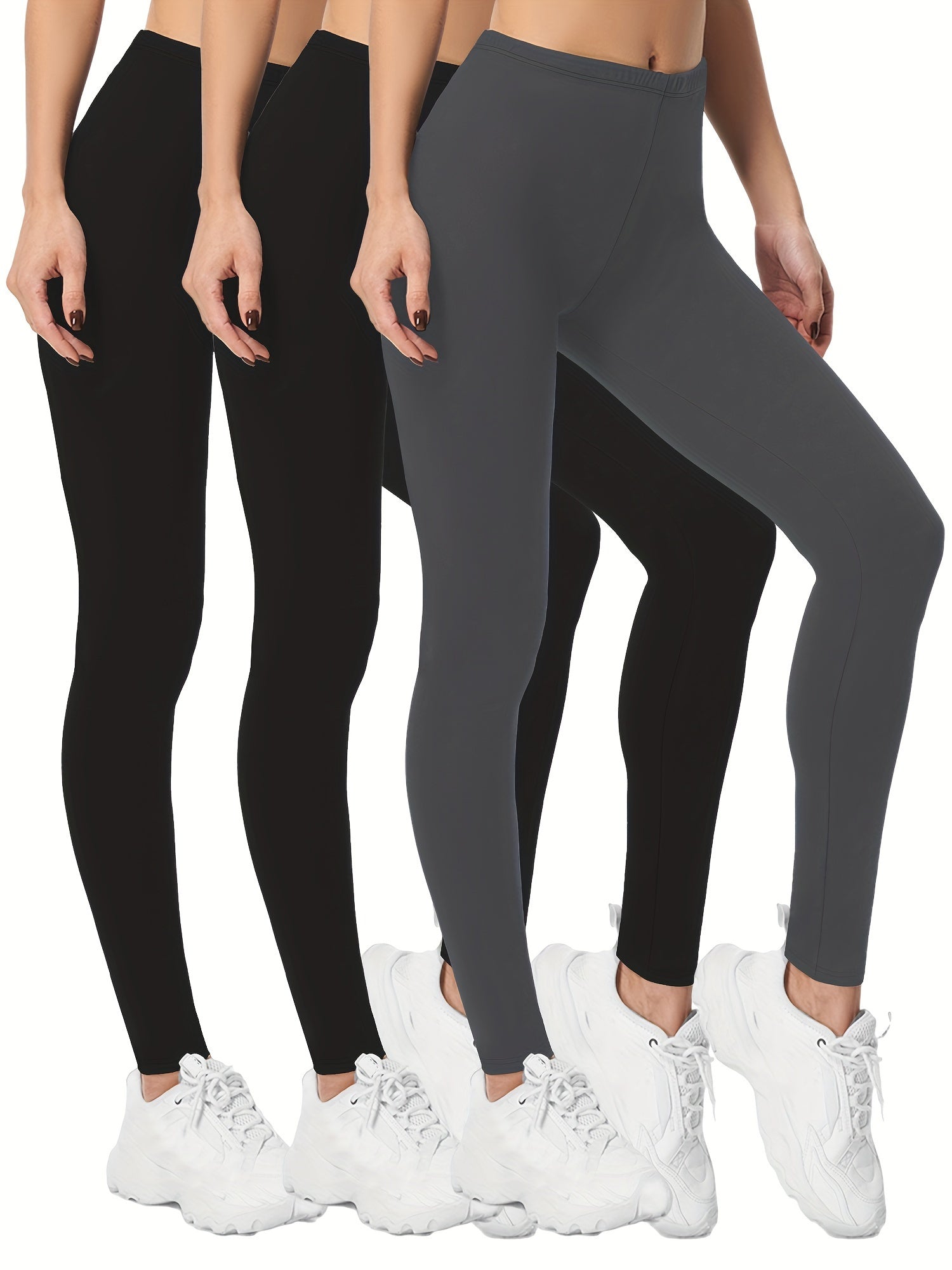 3-Pack High-Elasticity Slim-Fit 9/10 Length Pants - Solid Color Tight Waist All-Season Trousers, Machine Washable & Dry Cleanable, Casual to Dressy Wear (Compatible with Skirts/Blouses) - Bulk Pack for Cost Savings & Easy War