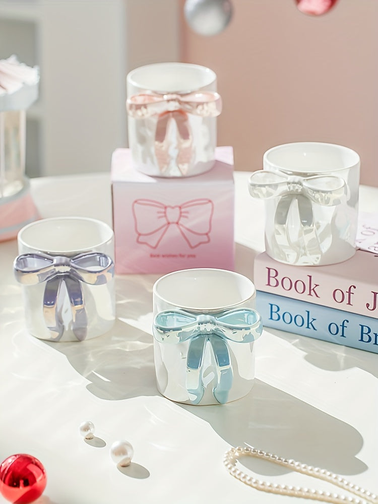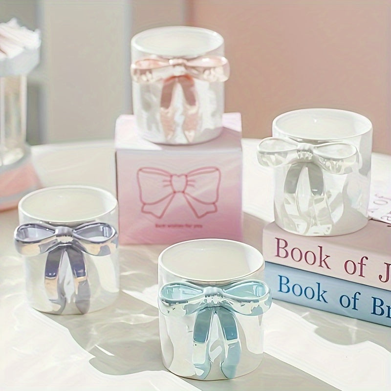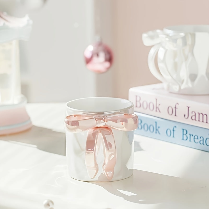350ml Elegant Butterfly Bow Ceramic Coffee Mug, Hand Wash Only Multipurpose Cup, Reusable, Recyclable Gift Set for Adults for Christmas, Halloween, Thanksgiving, Valentine's Day