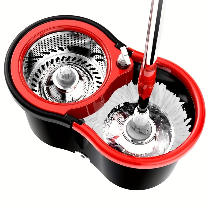 360-degree Rotating Mop and Bucket, 154.94cm Stainless Steel Mop Handle with Adjustable Length, Comes with 3 Ultrafine Fiber Replacement Mop Heads, Very Suitable for Cleaning on Boats, Floor Cleaning, Ceiling Cleaning