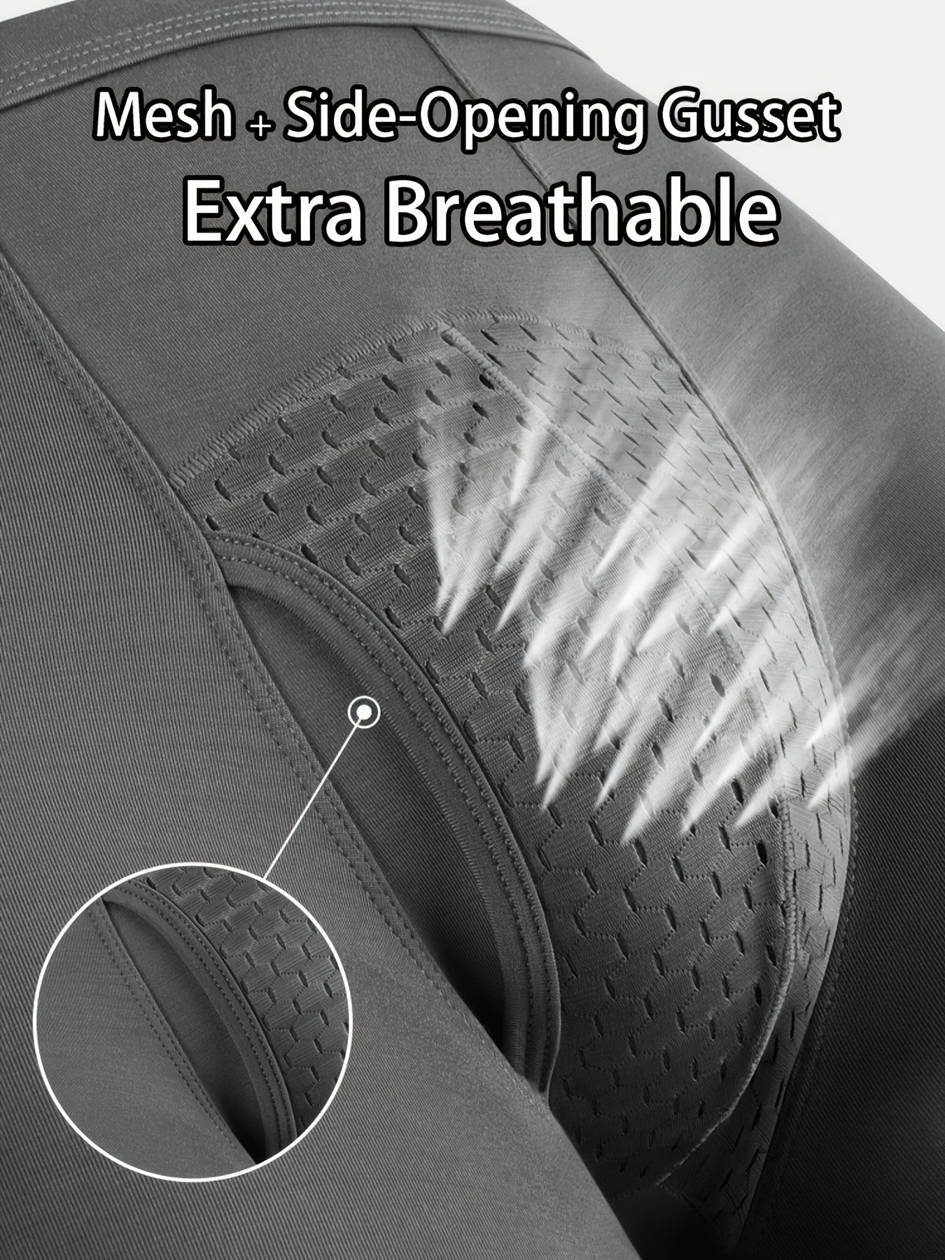3pcs GDECC Men's Solid Color Modal Boxer Briefs - Mid-Stretch Breathable Mesh, Side-Opening Gusset, Light Beige-Friendly Soft Flat-Cut Underwear for Daily & Casual Wear
