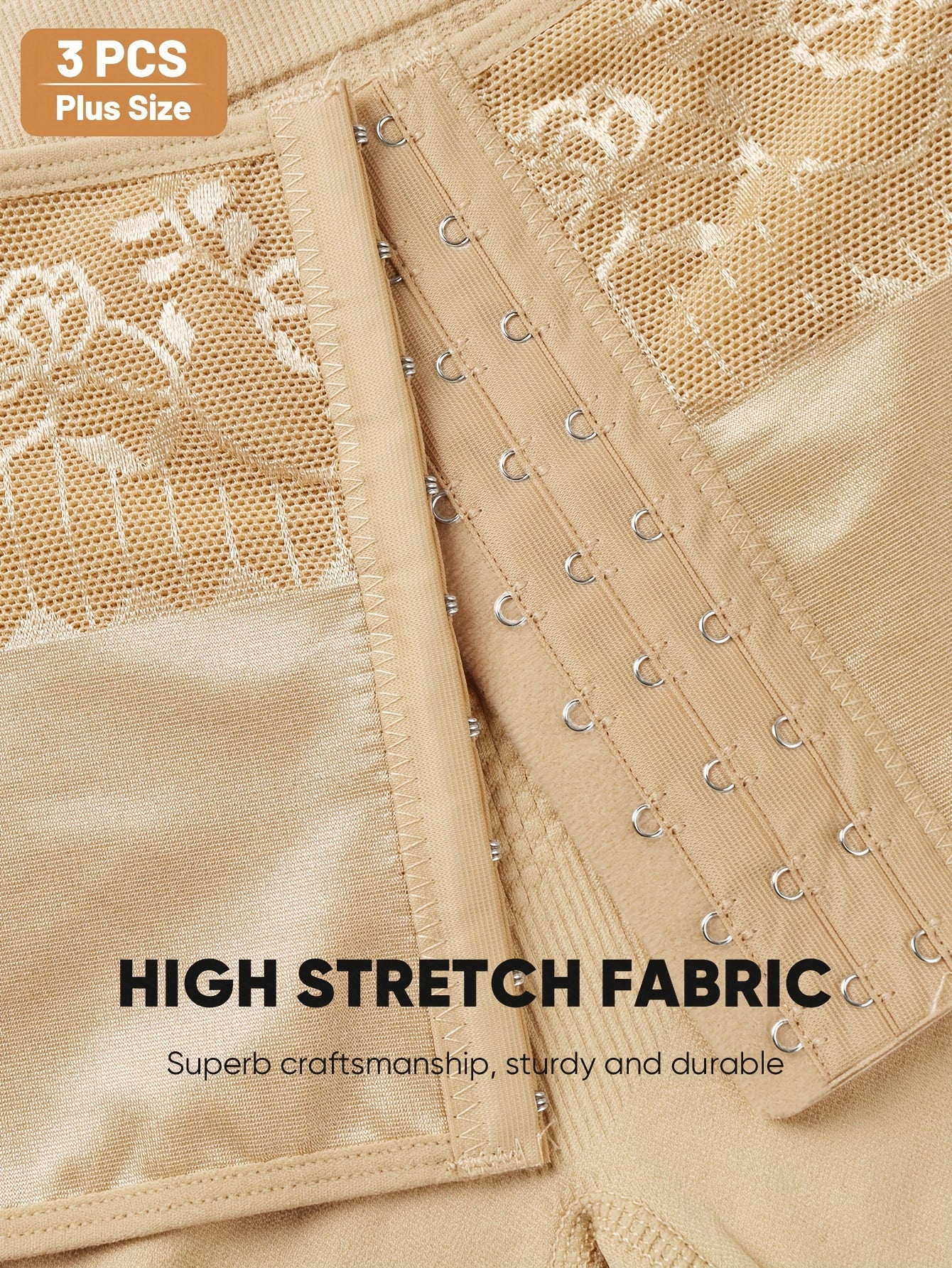3pcs Value Pack Plus Size Women'S High-Waisted Tummy Control Shapewear Shorts - Seamless, Breathable Nylon Fabric, Medium Stretch, Easy Care & Quick-Dry, Non-Slip Waistband for, & Casual Attire (1XL-5XL)