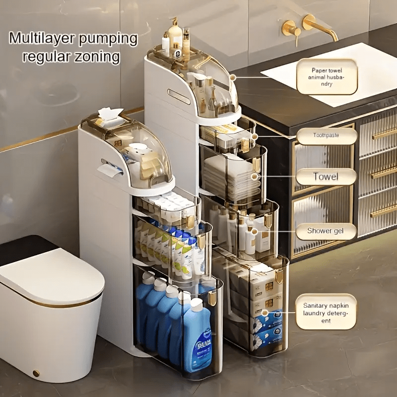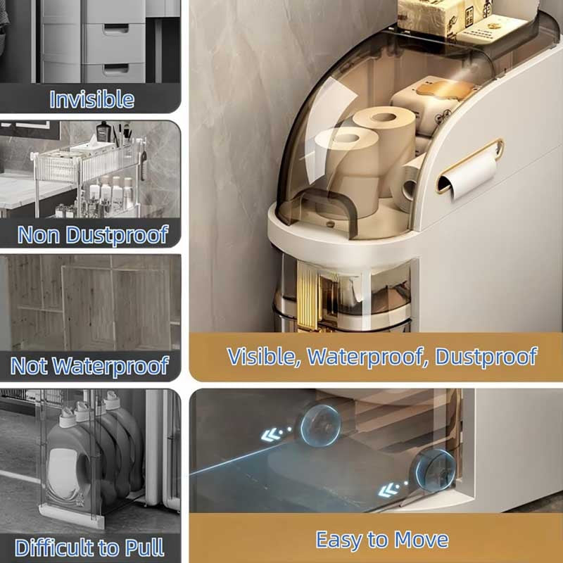 4-Tier Ultra-Thin Bathroom Storage Cabinet, Narrow Space Mobile Organizer with Wheels for Small Kitchens and Living Rooms