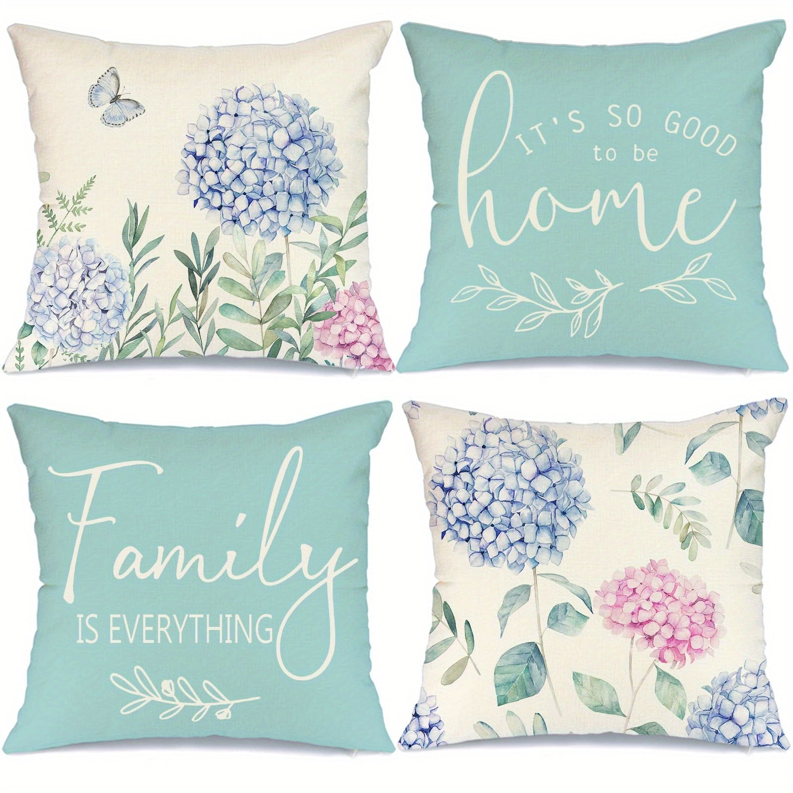 4pcs Blue Hydrangea Linen Blend Throw Pillow Covers, Cushion Cover For Bed Sofa Couch Living Room Decor Home Decor, No Pillow Insert, 18inch*18inch
