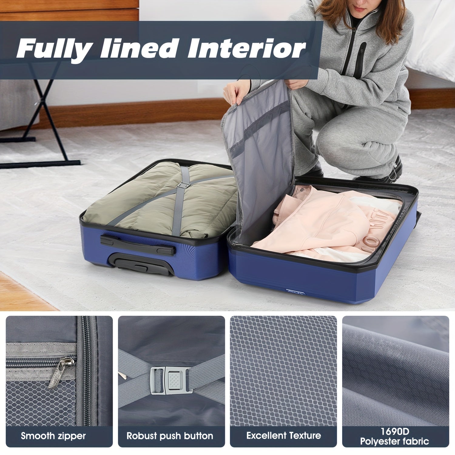 4pcs Luggage Set (12"/20"/24"/28") - Durable ABS Hard Shell Suitcases with Silent Spinner Wheels, Secure Key Lock & Digital Scale - Navy Blue/Dark Gray Travel Set, Telescopic Aluminum Handle & Multi-Directional Wheels for Car