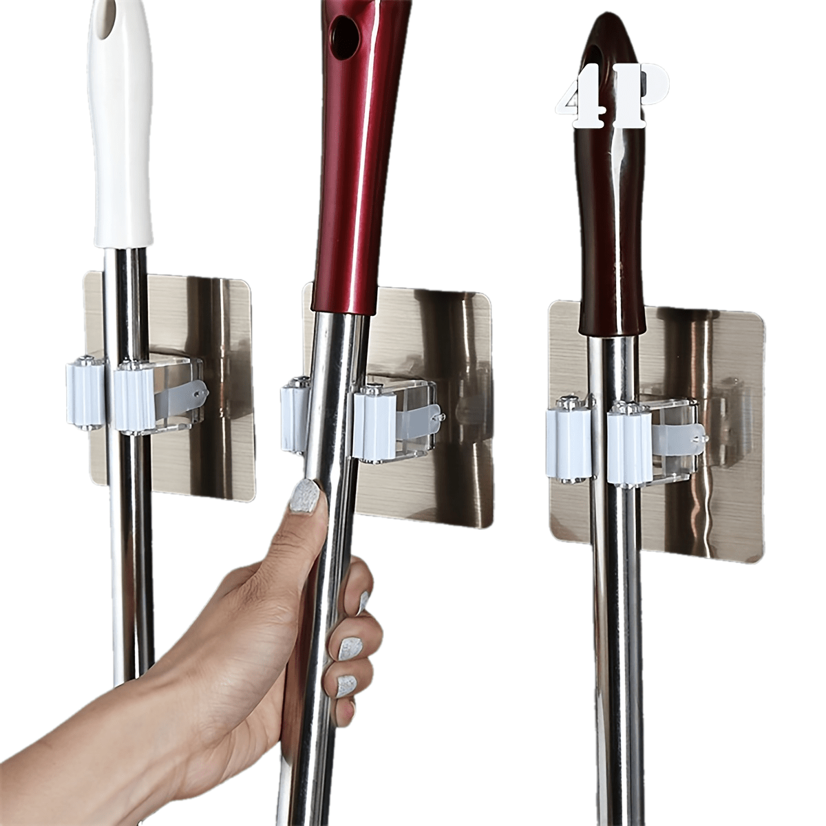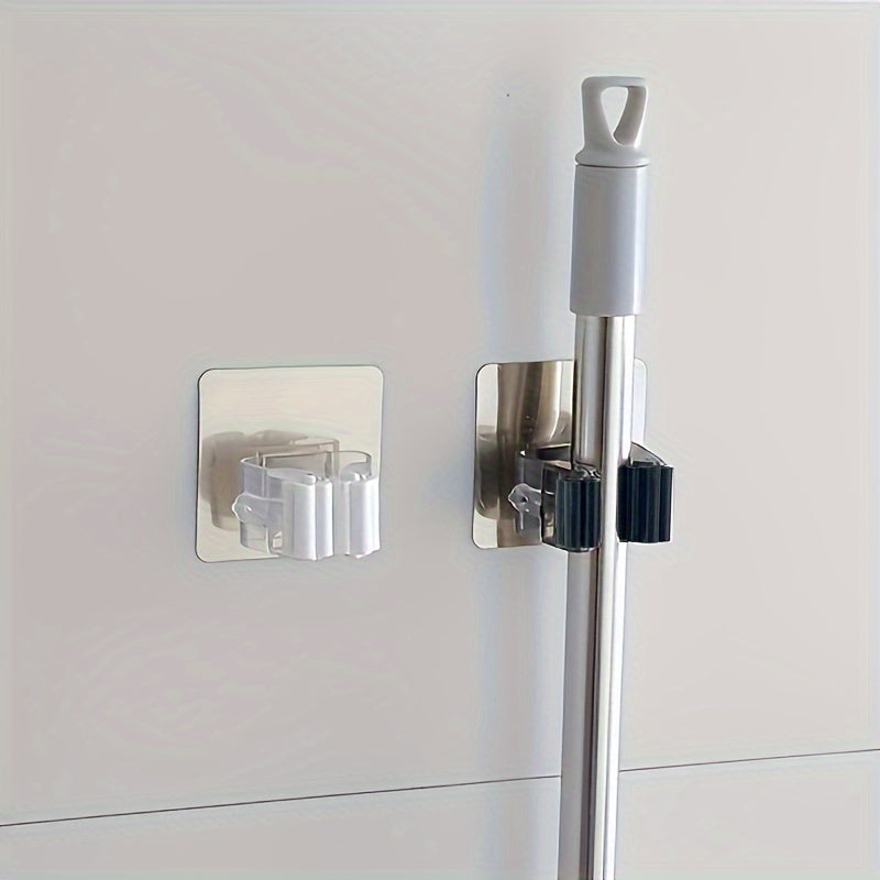 4pcs, Strong Mop Hook, Mop Clip, Punch-free Wall Mounted Mop And Broom Storage Clip, Adhesive Mop Storage Holder, Mop Hanging Rack, Multifunctional Tools Storage Clip For Bathroom Kitchen Garden, Strong Sticky, Cleaning Acces