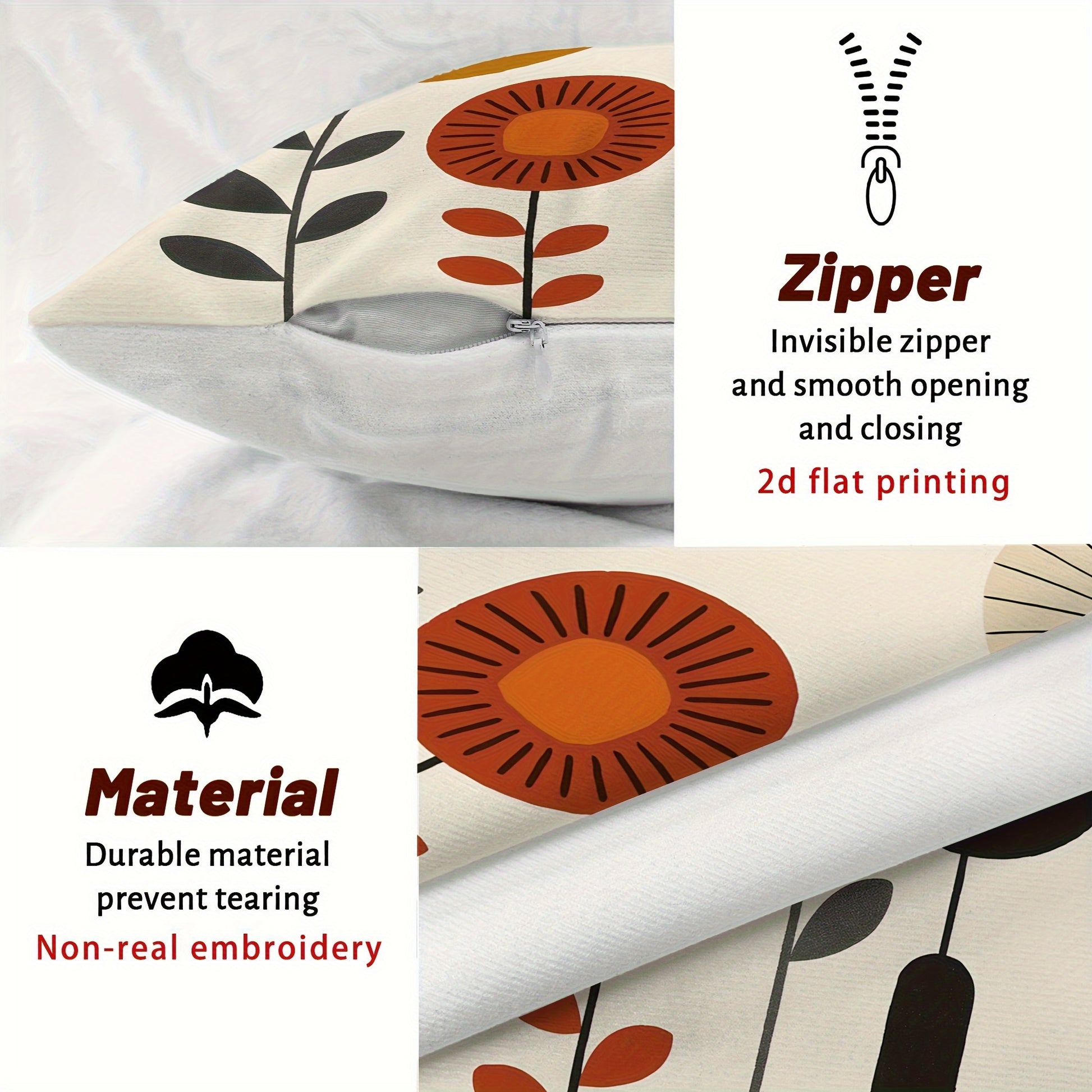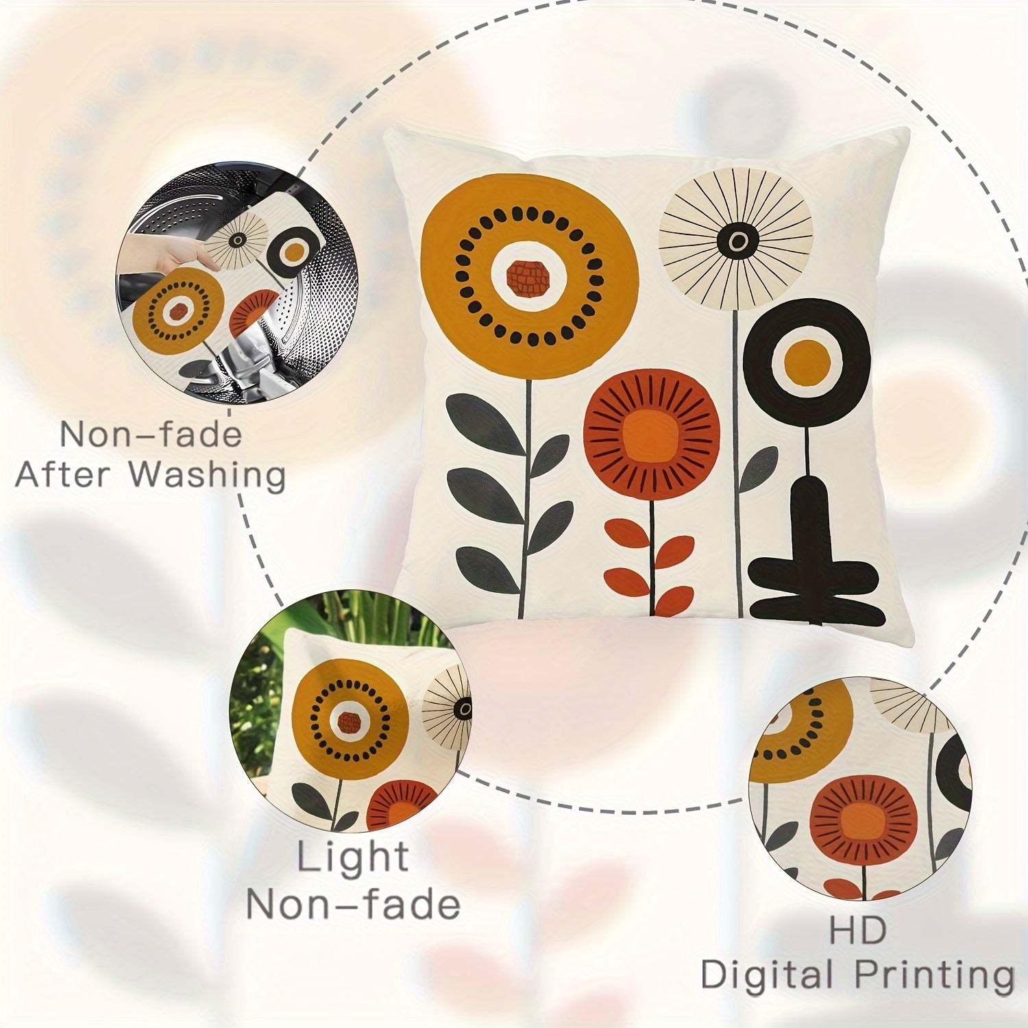 4pcs Vibrant Floral Plush Pillow Covers - Modern Abstract Design in Yellow, Blue, Green with Daisies & Vases, Soft & Cozy Decorative Cushion Cases for Living Room, Bedroom, Sofa - Machine Washable, Zipper Closure, No Inserts,