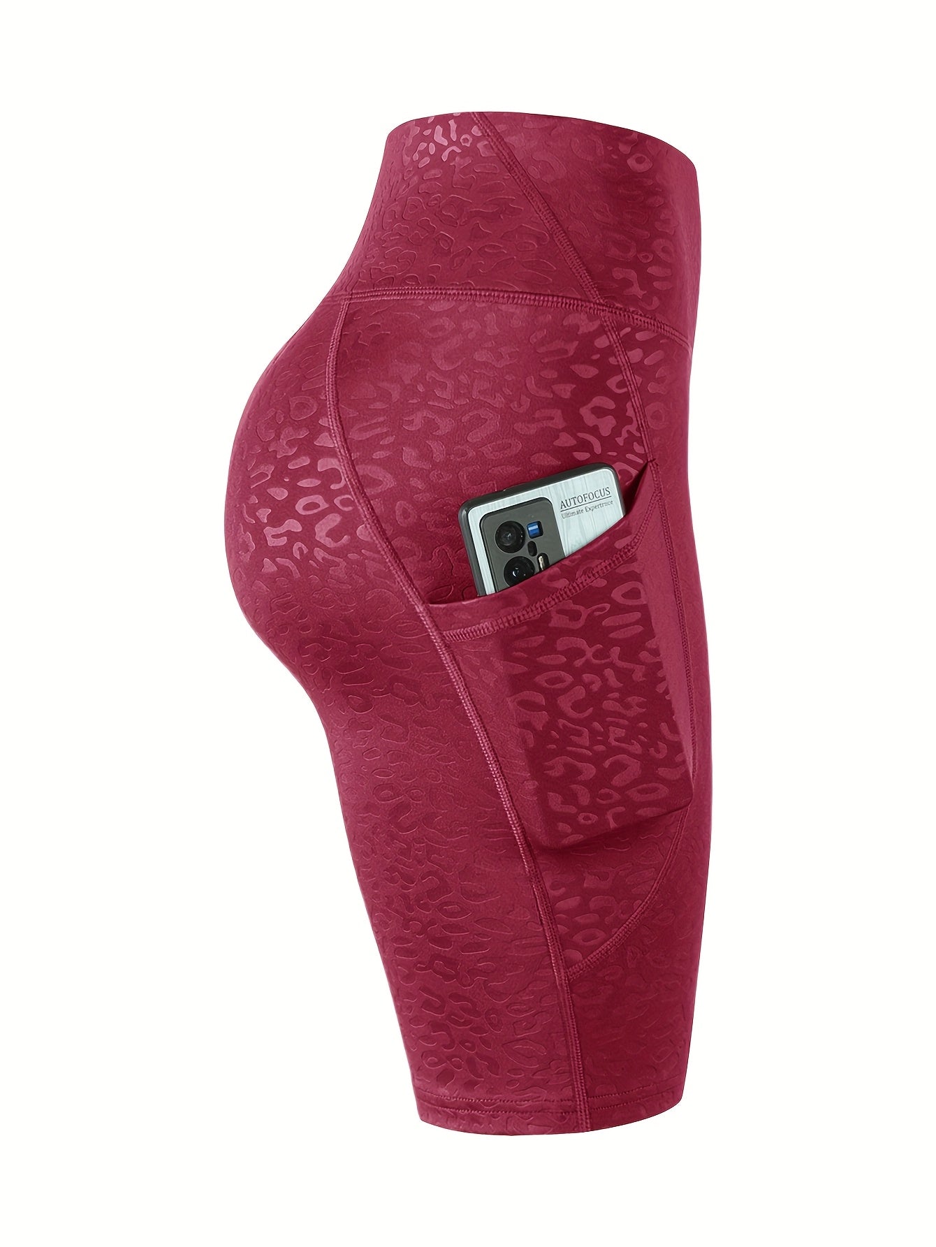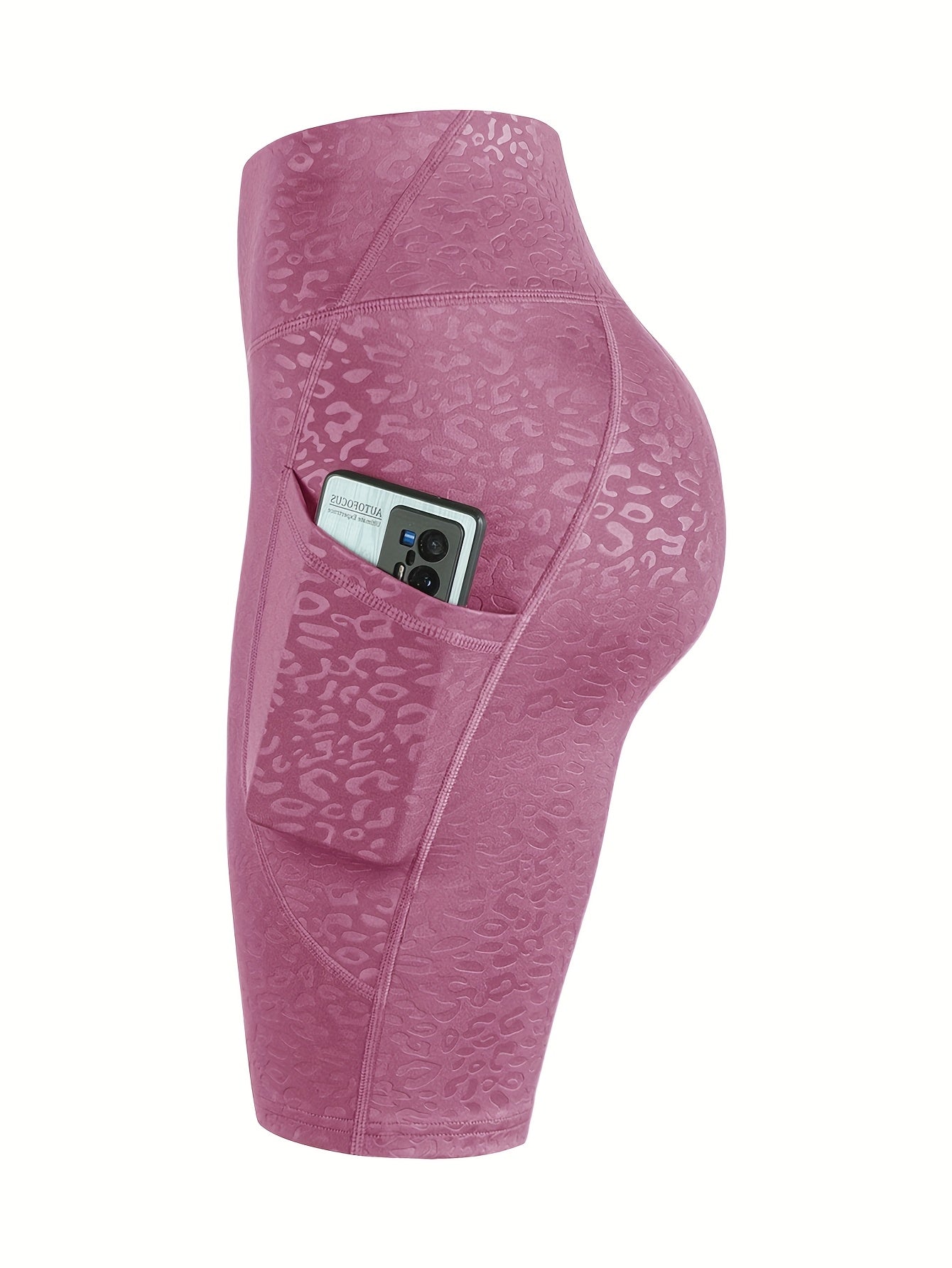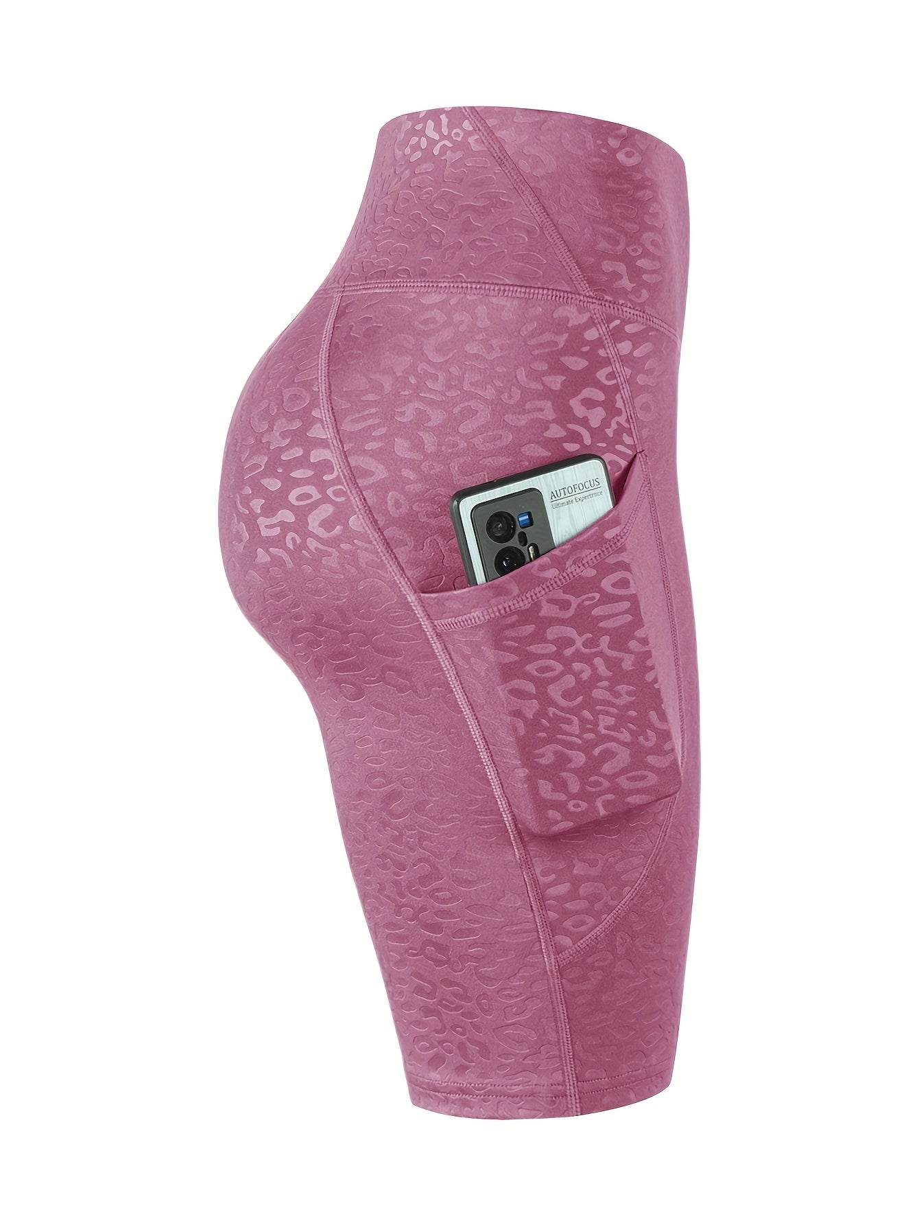 Women's High-Waisted Yoga Leggings with Pockets - Tummy Control Butt-Lifting Workout Pants, Floral Print, Stretchy Polyester/Elastane Blend, Machine Washable for Gym, Running & All-Season Wear