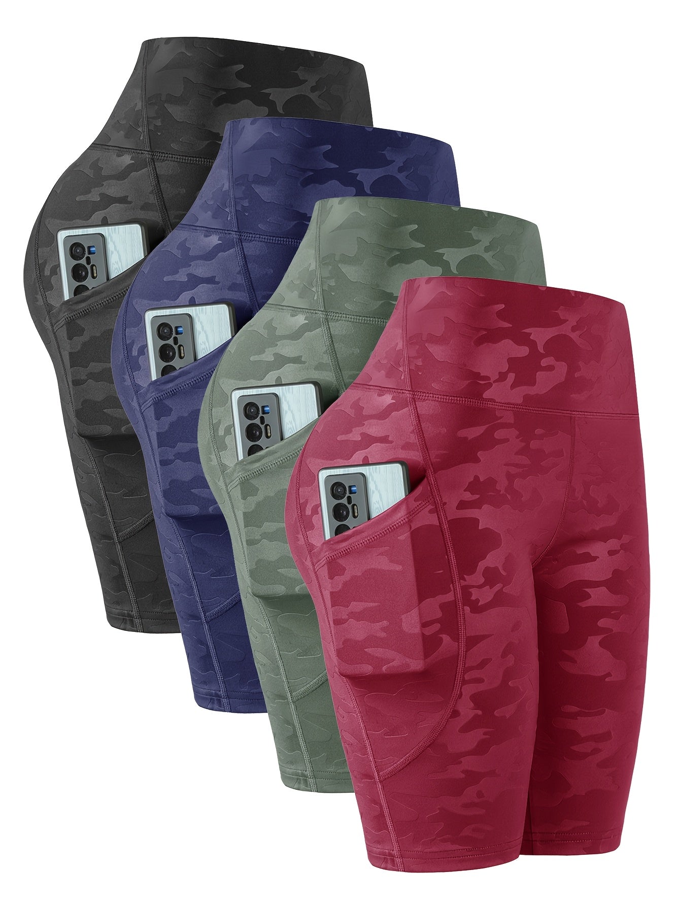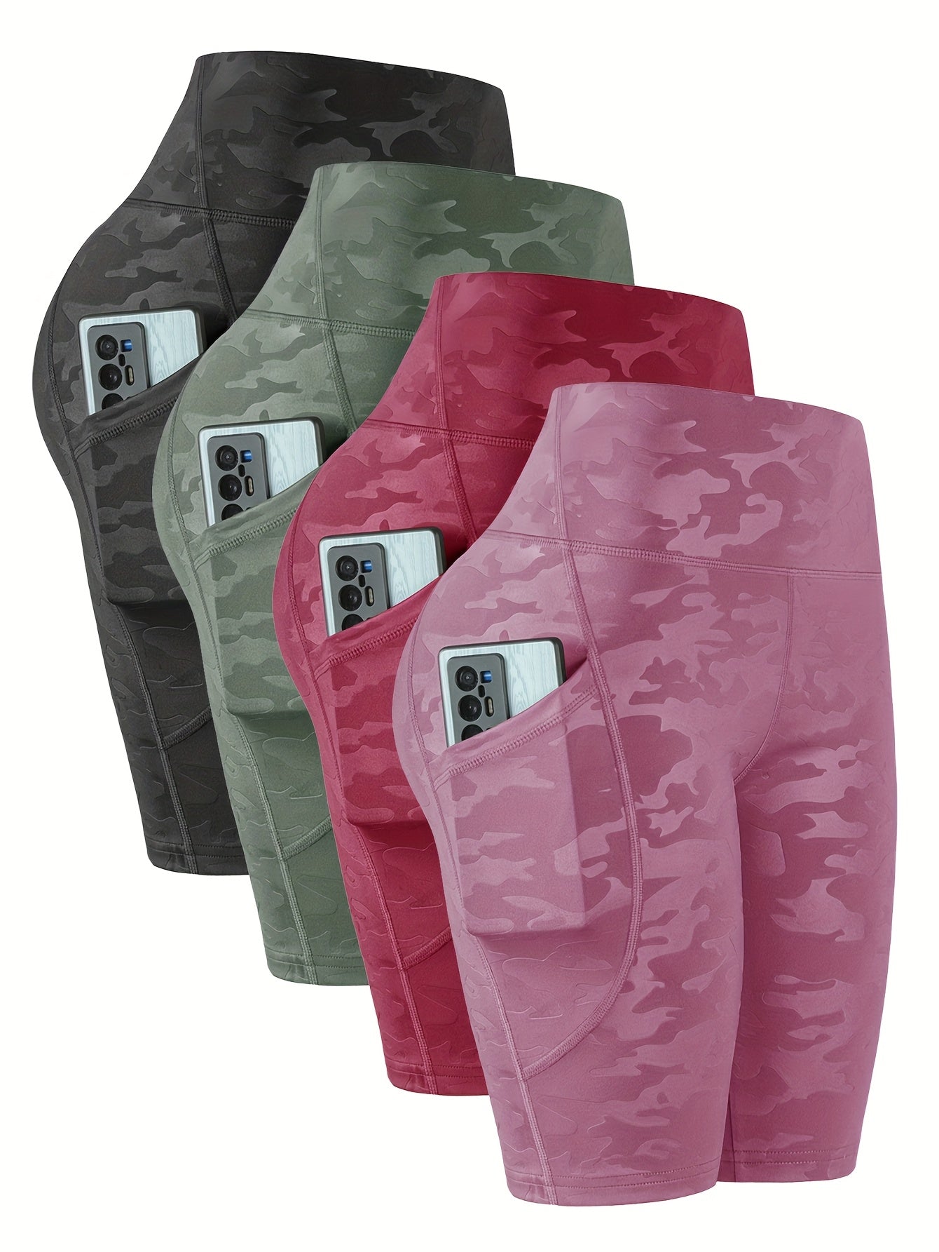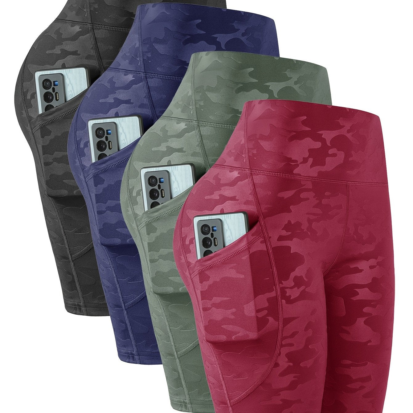 4pcs Women'S High-Waist Camouflage Print Leggings - Stretchy, Breathable Activewear with Pockets for Running, Fitness, Yoga - Spring/Summer/Fall Outdoor Pants, High Waisted Legging