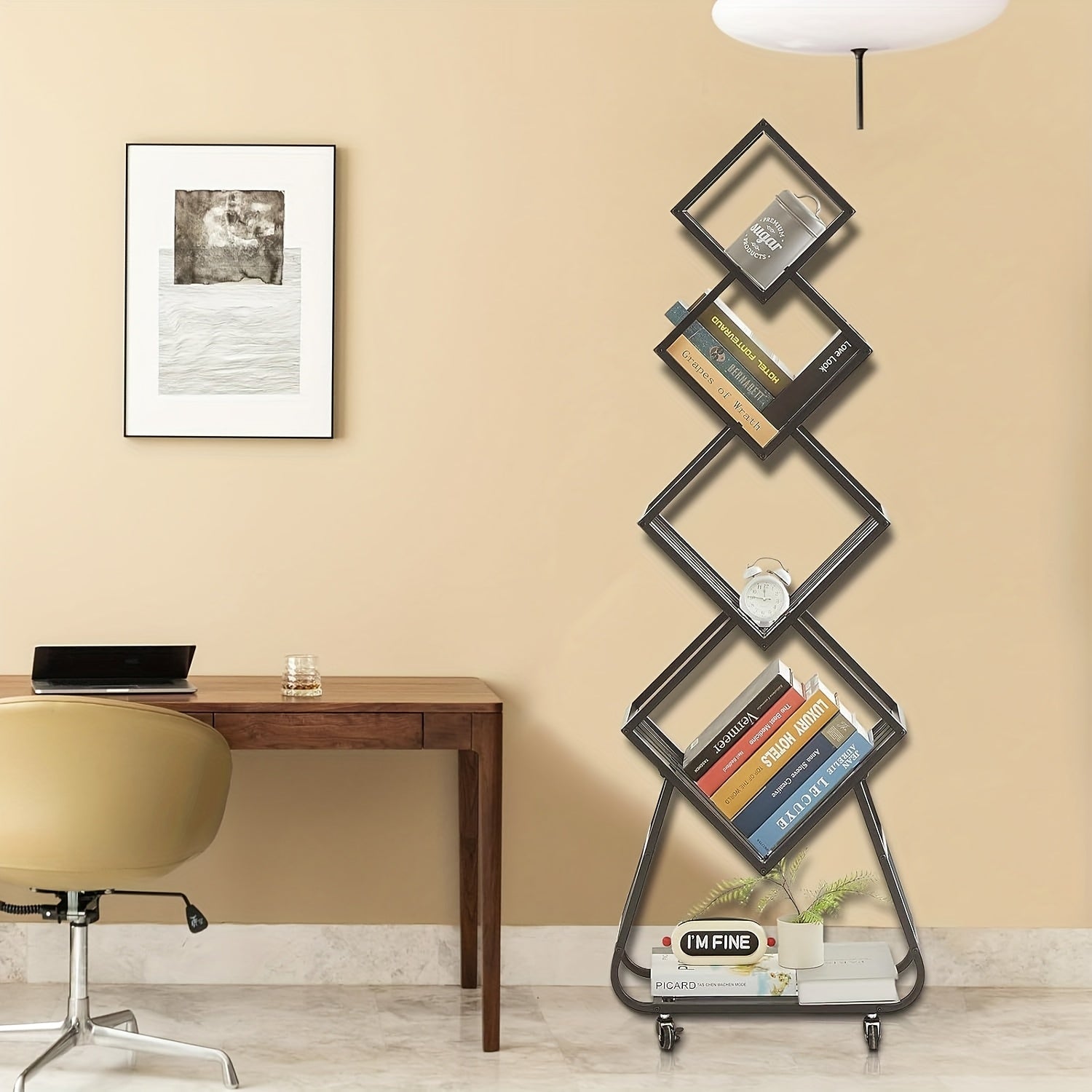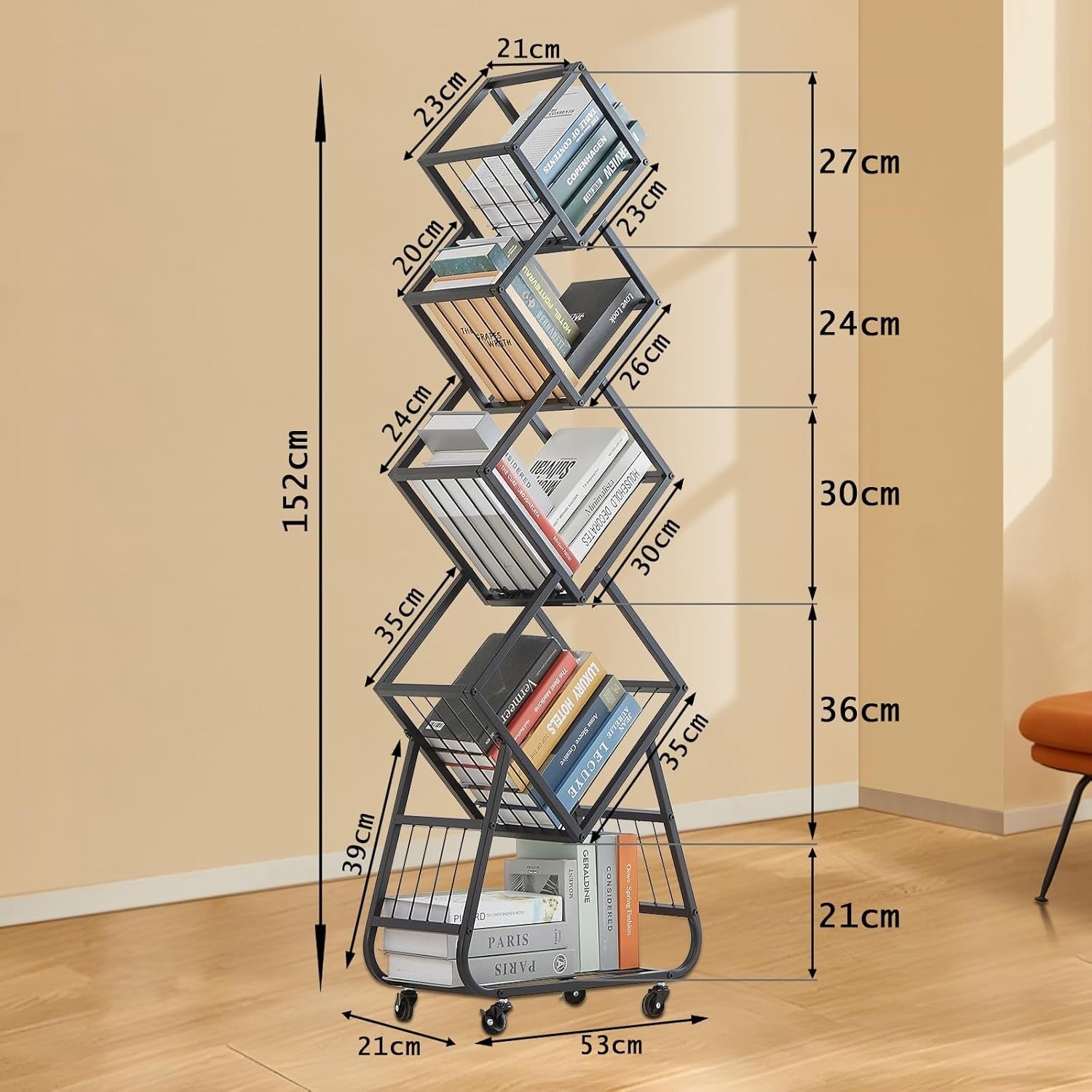 5-Tier Rotating Bookshelf with Wheels - Heavy-Duty Modern Minimalist Bookcase, 360° Swivel Shelf, Space-Saving Storage Organizer for Home Office, Living Room, Bedroom - Easy-Move Casters (Black), Bookshelf Decorations, Versa