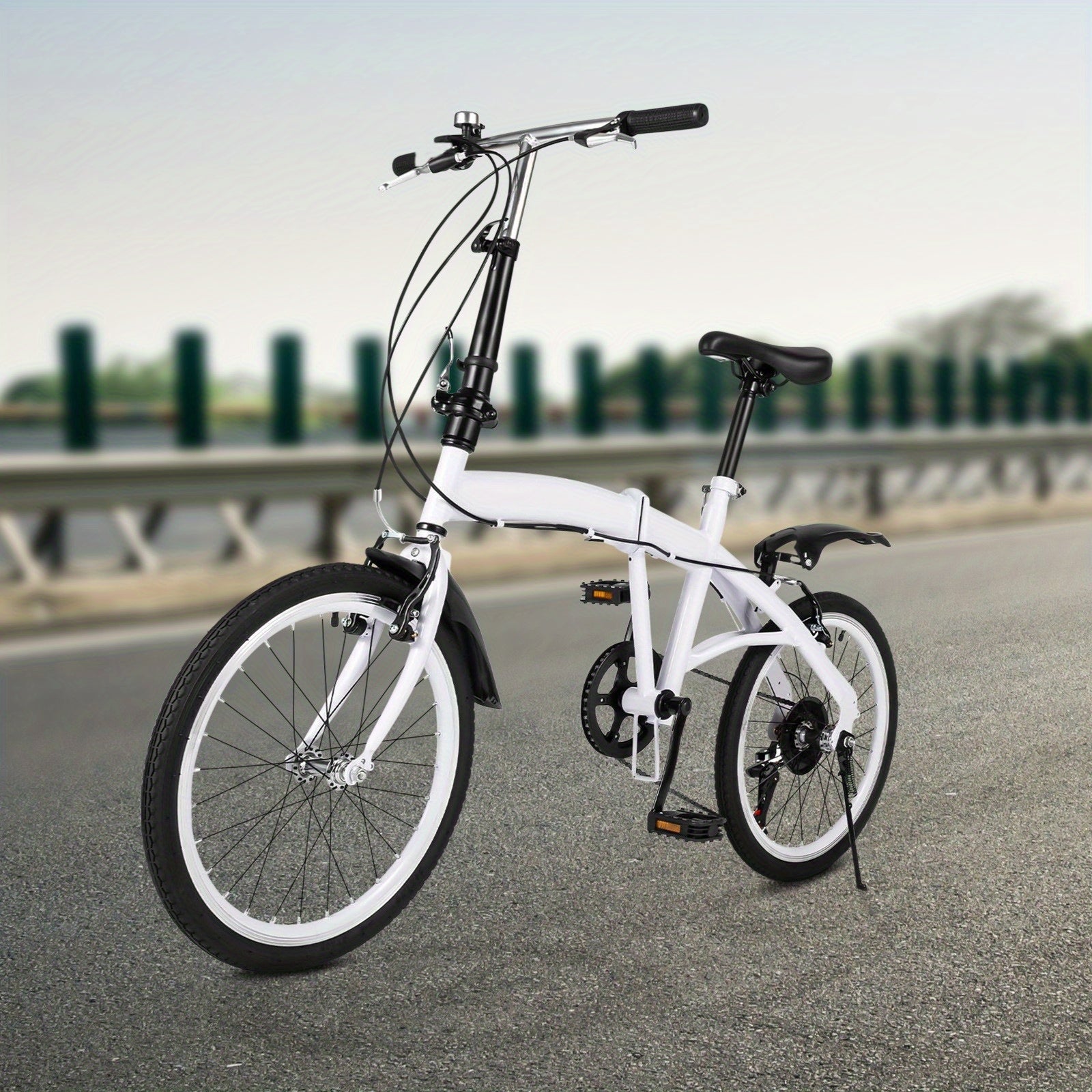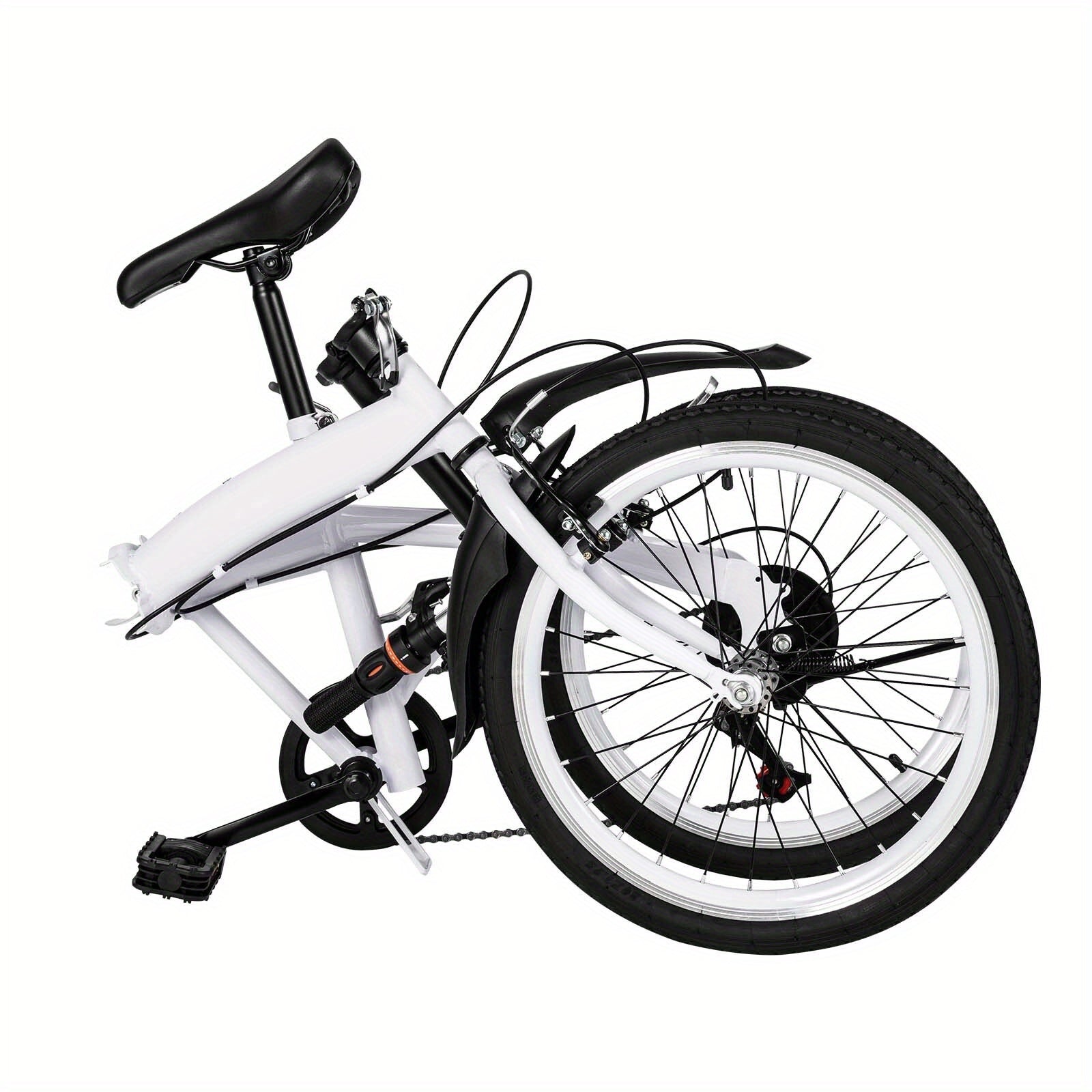 50.8 cm Folding Bicycle Adult Lightweight 6-Speed Height Adjustable Folding Bicycle Adult for Outdoor Cycling Commuting White with Bicycle Circle