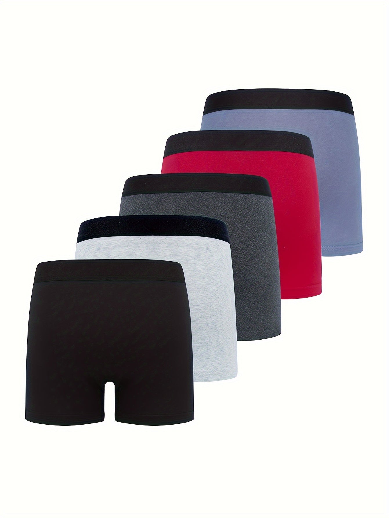 5pcs Football Print Boxer Briefs for Teen Boys - Breathable, Stretchy, Comfort Fit with Elastic Waistband & Half-Button Closure, Black with White & Red Soccer Design, Sports Underwear, Youth Athletic Wear, Sporty Boxers, Brea