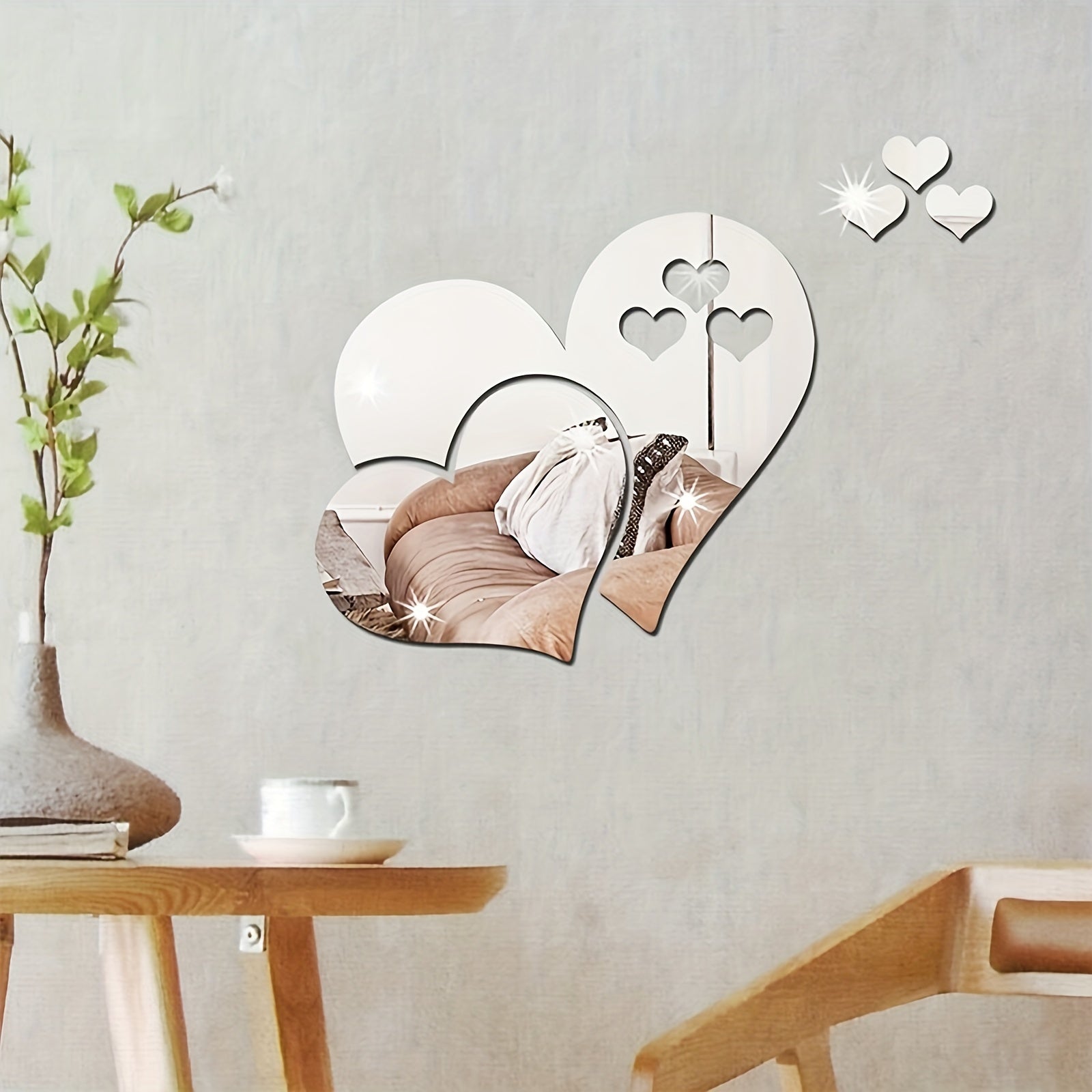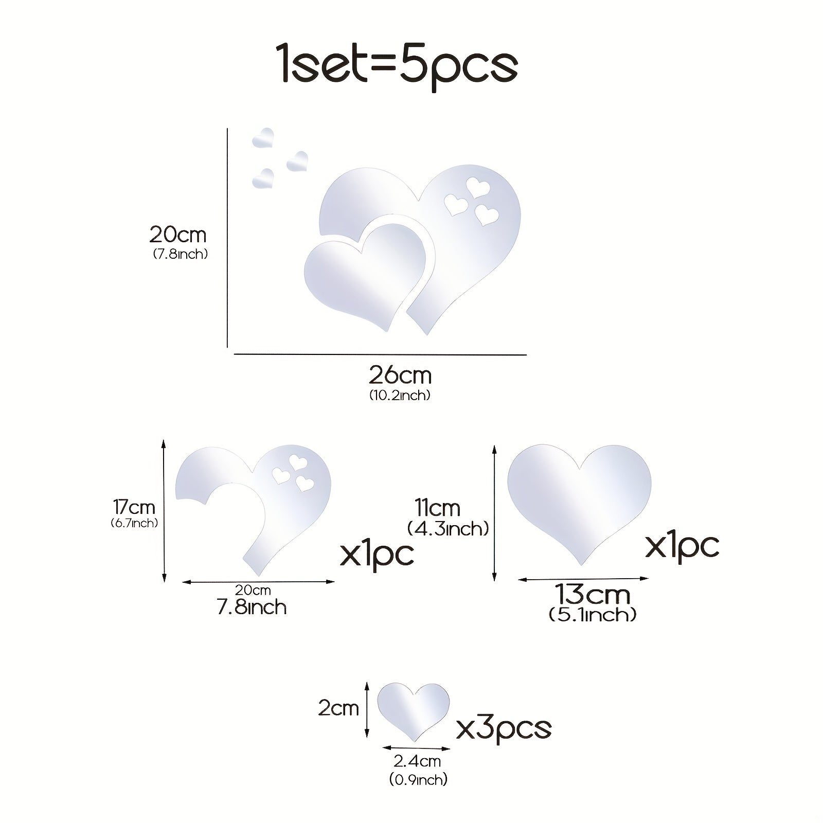 5pcs Mirror Sticker, Acrylic Shatterproof Mirror Heart Wall Stickers Decor For Bedroom Living Room Dining Room Kitchen School(10.2*7.8inch)