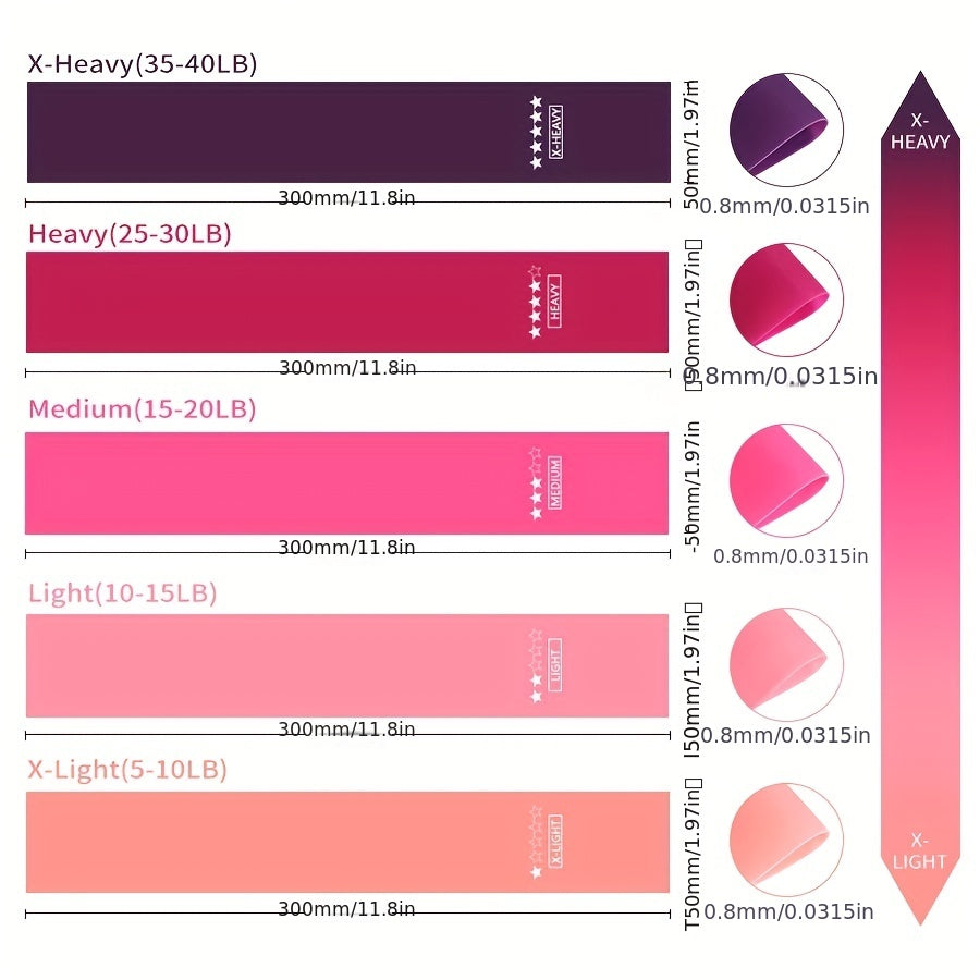 5pcs/set Portable Resistance Band Set, Elastic Bands For Yoga Gym Pilates Weight Training & Sports