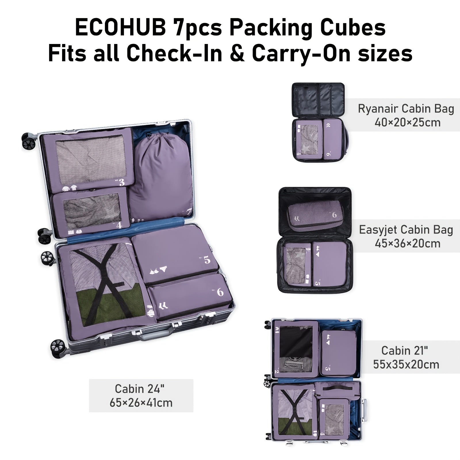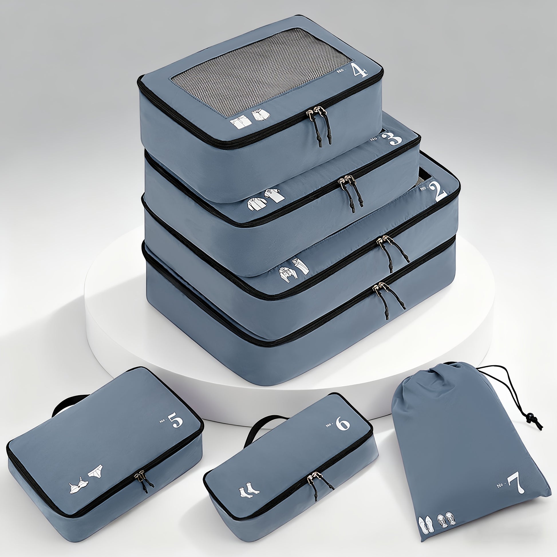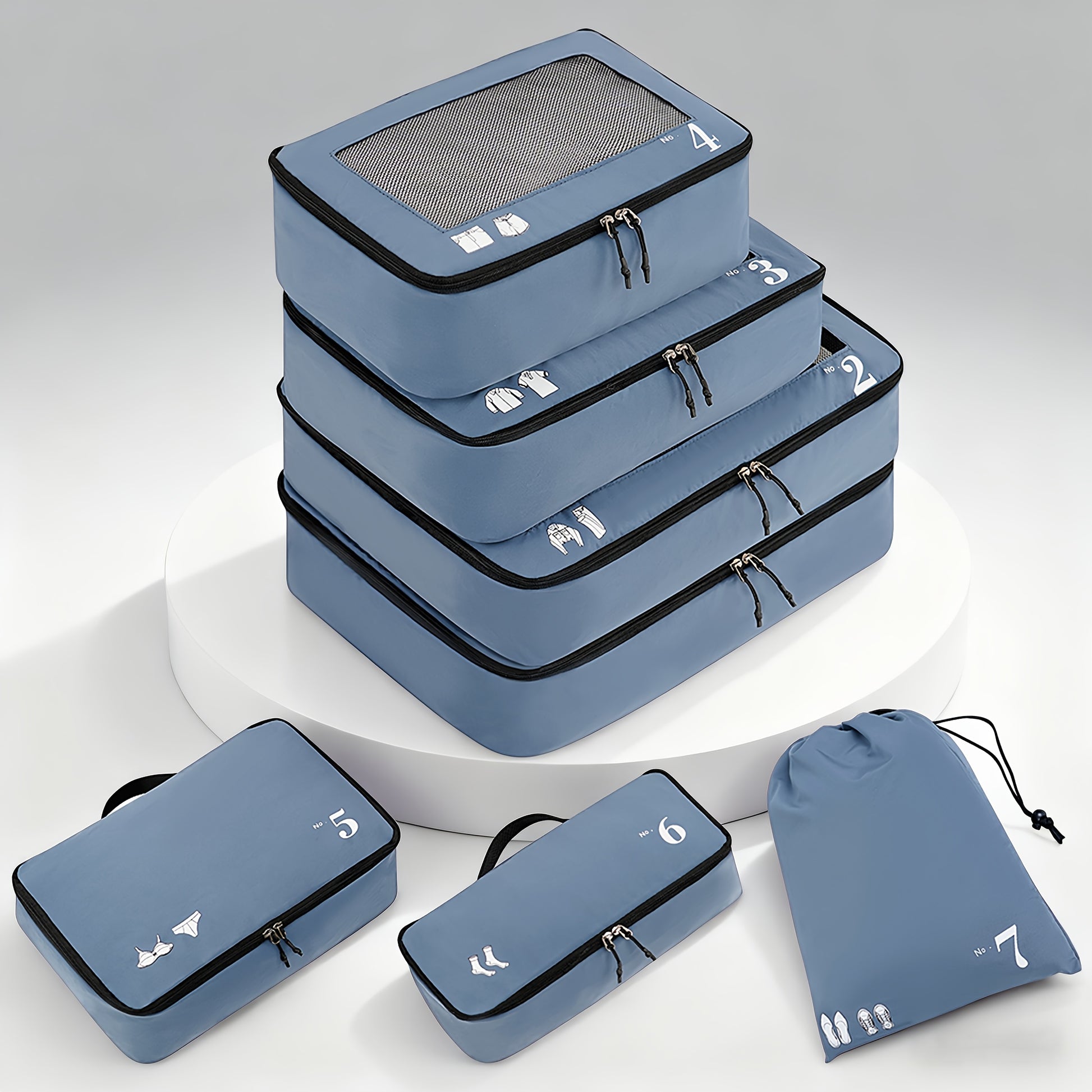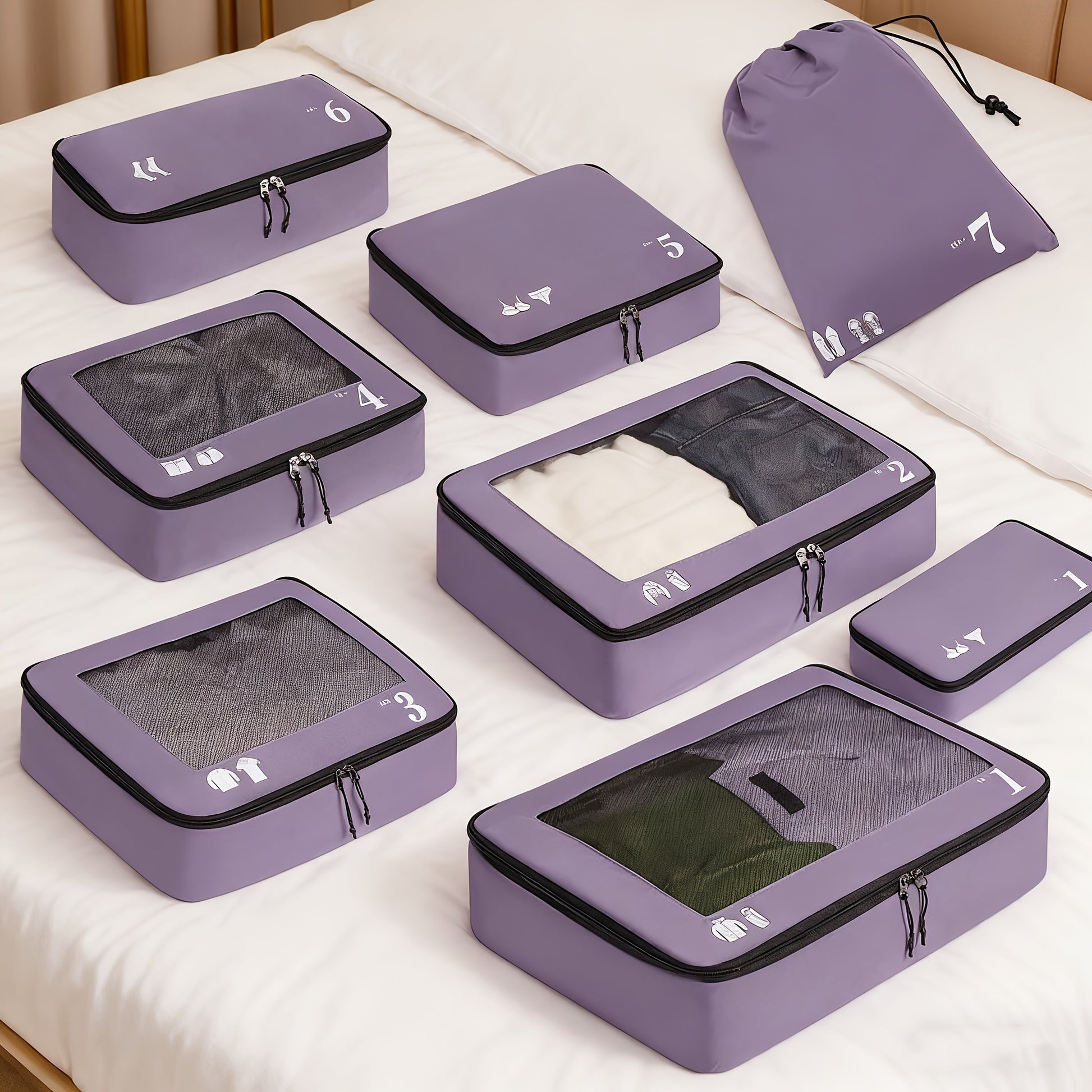 7pcs All-in-One Luggage Organizer Set with Shoe Bag & Laundry Pouch - Heavy-Duty Travel Packing Cubes, Zippered Compartments, Space-Saving Design for Suitcase, Backpack, Business Trip, Vacation, Camping - Machine Washable, Re