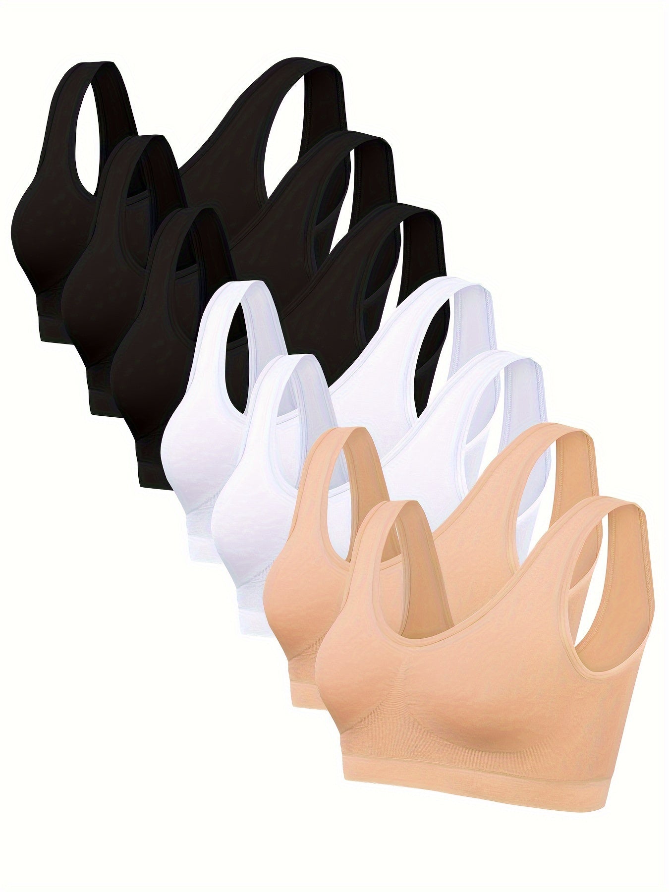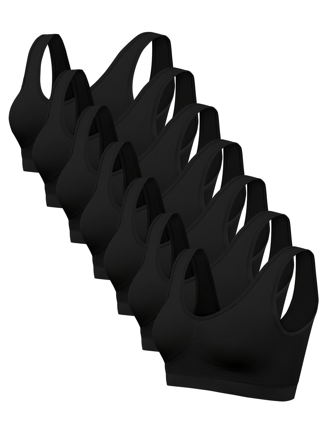 7pcs Solid Seamless Sporty Bra, Comfy & Breathable Bra, Women's Lingerie & Underwear