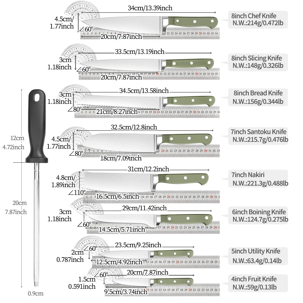 Blade Length: 6-7.9in,8-9.9in,10-11.9in