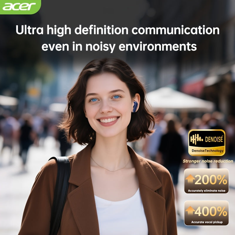 Acer OHR548 Wireless Headphones with 52dB Deep Sea Noise Reduction, In-Ear Design, Wireless 5, 4, Heavy Bass, No Sound Leakage, SSVP Extreme Digital Enhancement, Type-C Charging Case, Ultra-Long Standby, Touch Control, for Sm