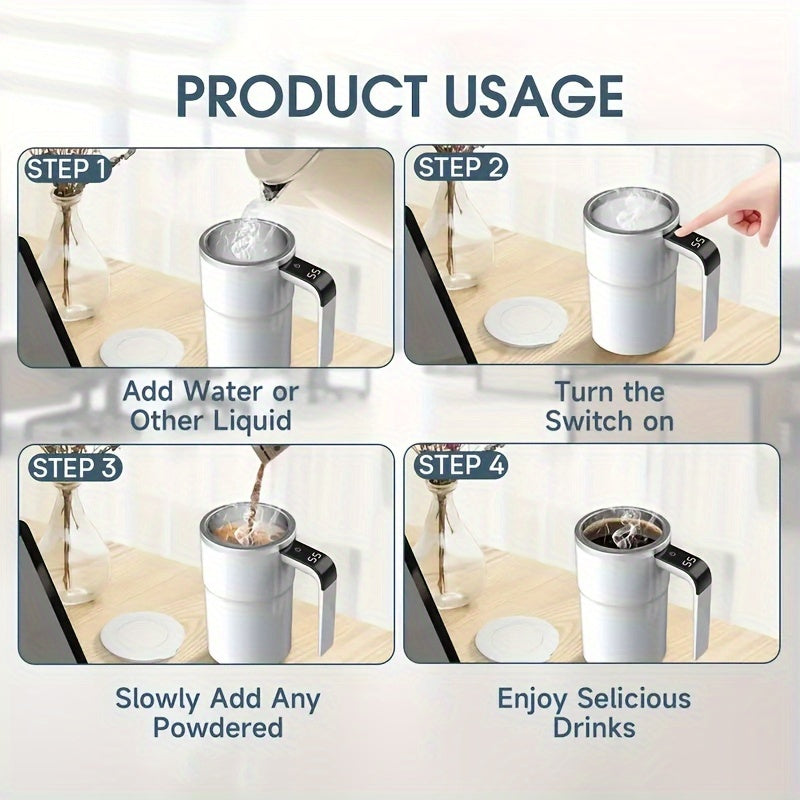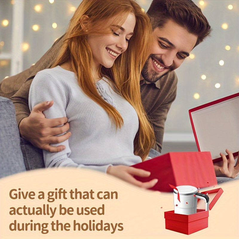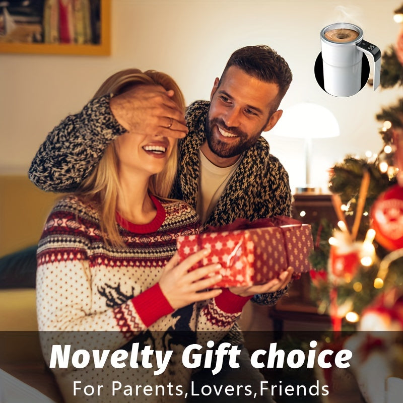ADKING 12oz Smart Tumbler with Digital Display - USB Rechargeable, Stainless Steel Electric Coffee Mug with Timer & Adjustable Speed Control, Long-Lasting Battery Life (80+ Min), White & Pink for Winter
