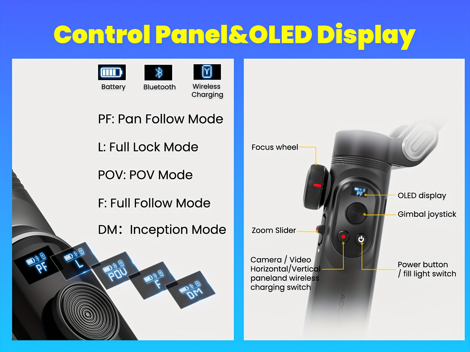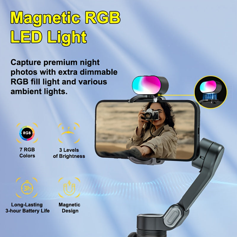 AOCHUAN Smart X Pro 3-Axis Stabilized Phone Gimbal Kit with AI Smart Control, 7-Color RGB Fill Light, OLED Display, Extendable Pole, 360° Rotation, Foldable Design, Long Battery Life, Professional Vlogging & Outdoor Shooting