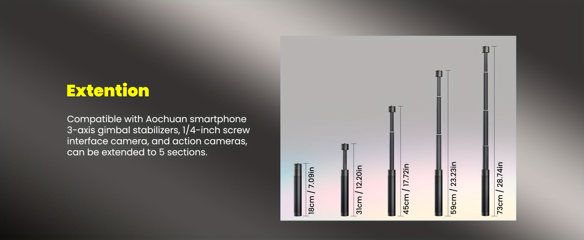 AOCHUAN SmartX Pro Combo 1 - Wireless Phone Gimbal Stabilizer with RGB Light, Extended Rod, and Carrying Case for YouTube & TikTok Video Creation (15 Pro Max Compatible), YouTube Video Stabilizer | Modern Gimbal Design | Comp