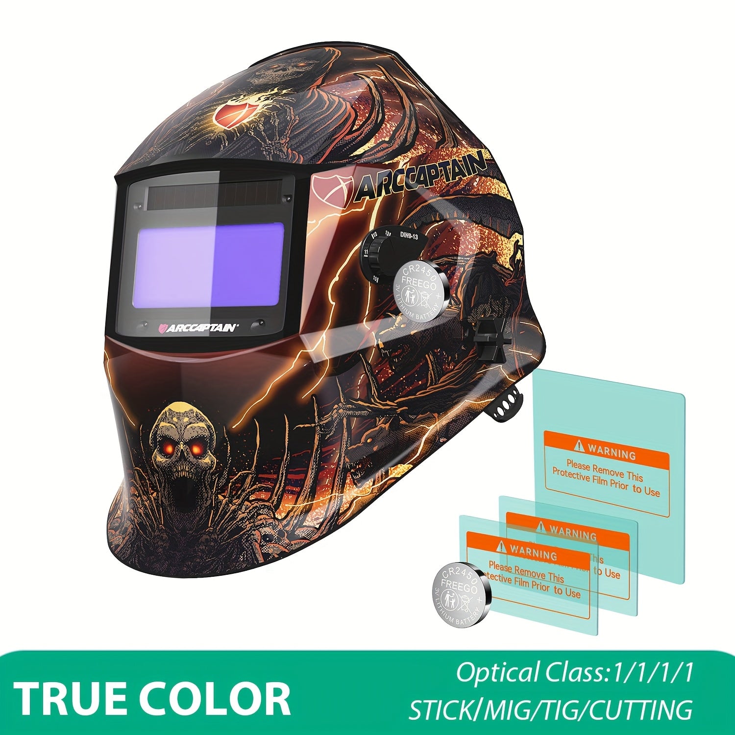 ARCCAPTAIN Auto-Darkening Welding Helmet with -Free Large View Welding Hood Mask, True Color Vision & Shade 1-4 Adjustment, CE, Compatible with Welding Machines (Professional Welder's Mask)
