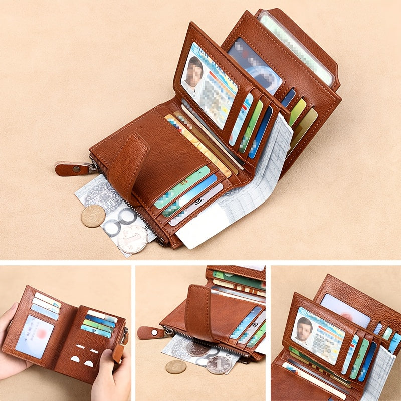 BANYANU Men'S Genuine Leather Wallet - Slim Vertical Design with Multiple Card Slots, RFID Blocking, and Secure Zipper Closure for Everyday Use, Everyday Wallet | Sleek Wallet | Genuine Leather Wallet