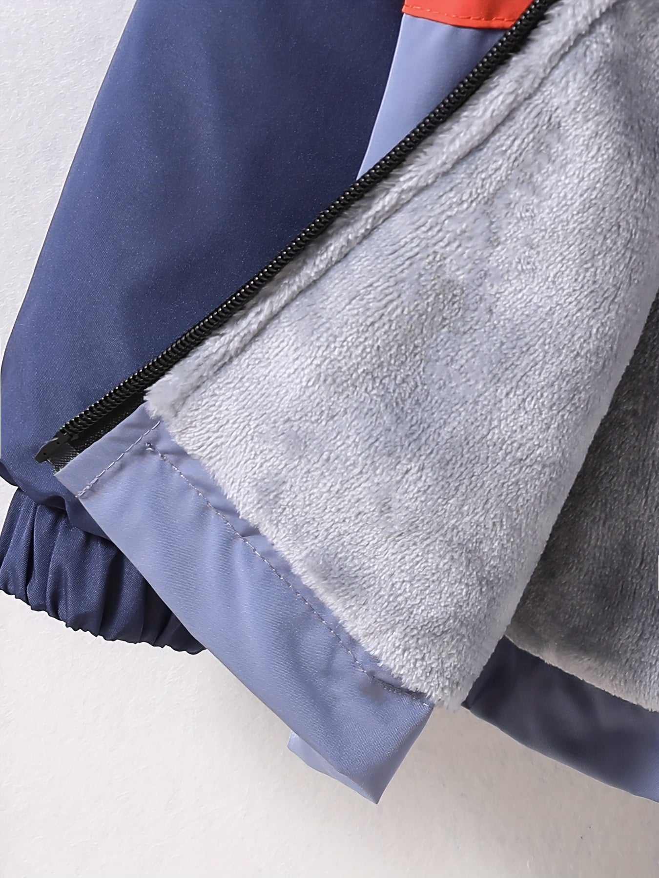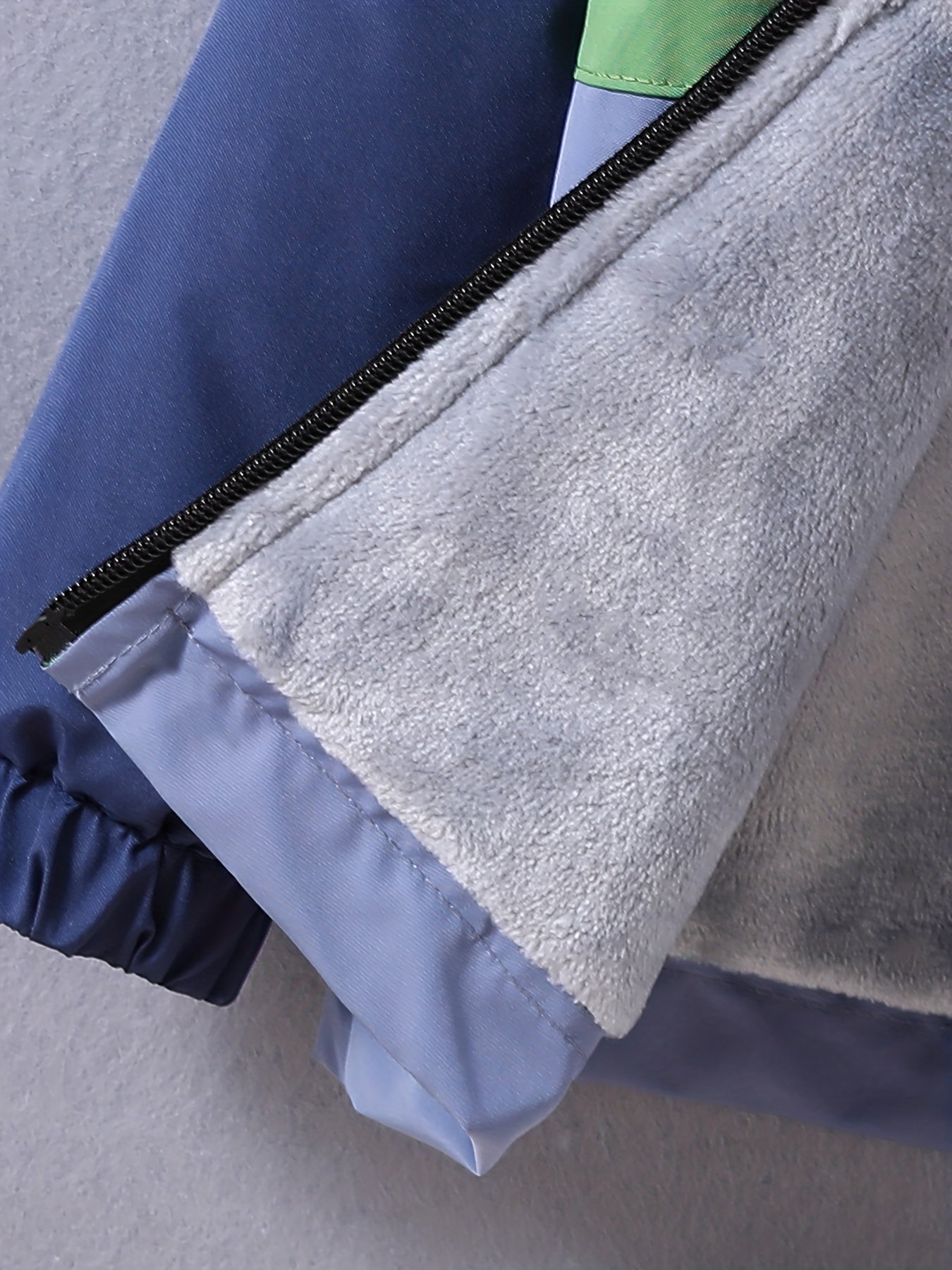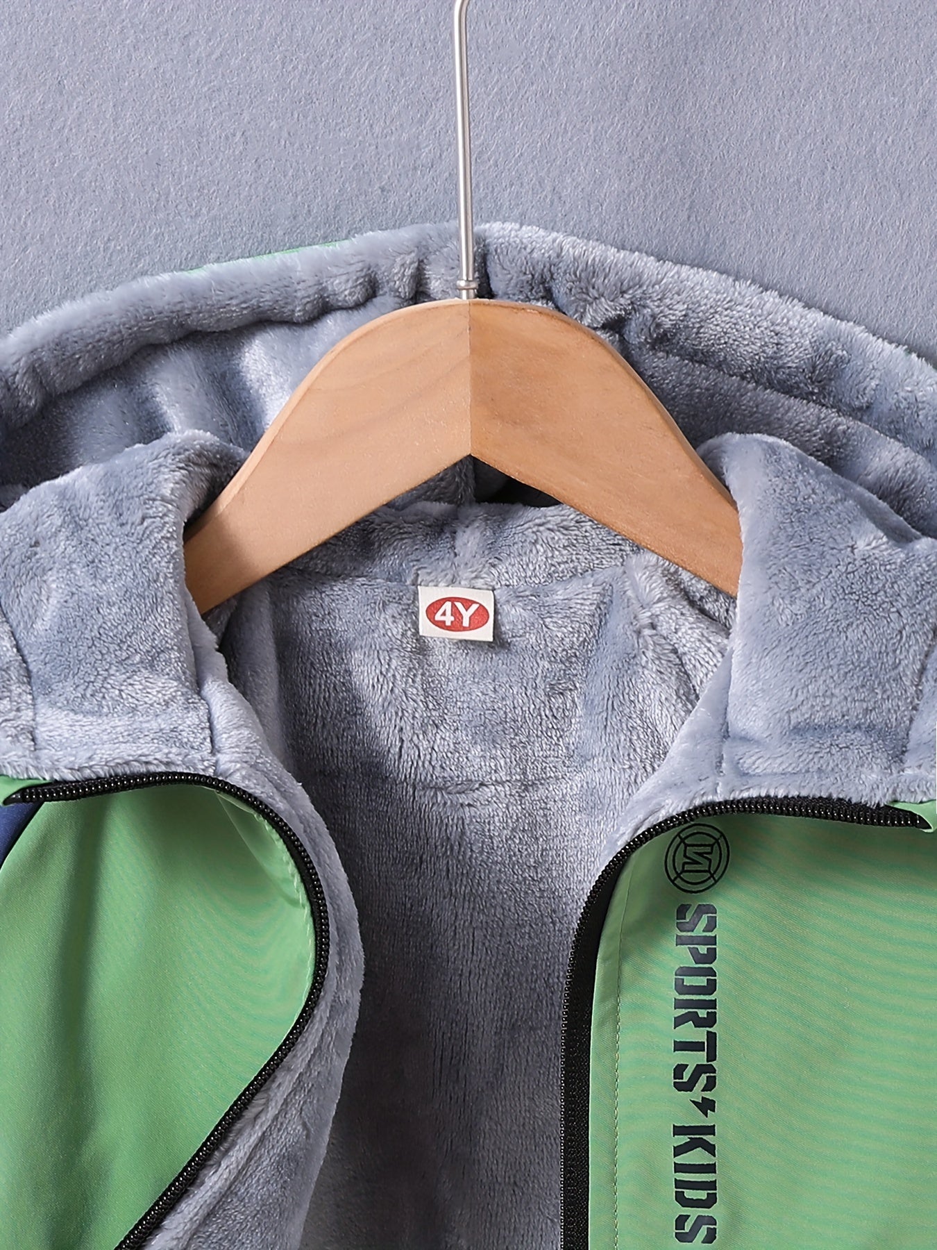 Boys' Casual Hooded Windbreaker Jacket, 100% Polyester, Long Sleeve Raglan Zip-Up Outdoor Coat with Alphabet Pattern, Non-Stretch Fabric, Regular Fit for Fall/Winter - Warm & Windproof